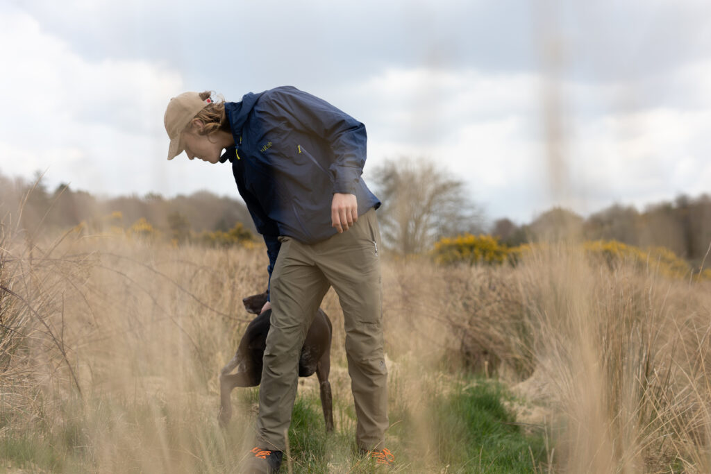 Both the jacket and the trousers did ‘wet out’ after a while on the moors, but this does not mean they let water in – it’s just the point at which the DWR coating no longer causes moisture to ‘bead’ off of the garment’s surface. I would say that the point at which these wet out is very much to be expected considering that they both use a 40D face fabric, which keeps weight down, but it is not as resistant compared to heavier and thicker 70D+ fabrics that you might find on proper mountaineering garments, for example. In addition, both the jacket and the trousers use PFC-free DWR coatings, which boast fantastic environmental credentials, but unfortunately do not last quite as long as their older counterparts. That being said, the DWR coatings on these garments, or any other waterproofs for that matter, can easily be topped up with a product such as Nikwax TX Direct if necessary.