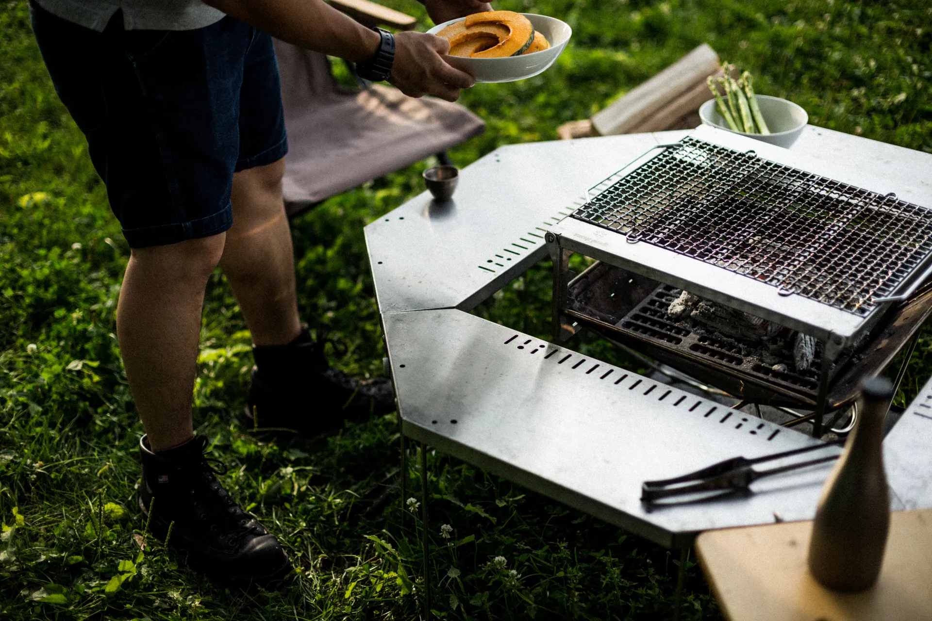 The Snow Peak Fire Ring Table turns your Snow Peak Fireplace into a dining table. Creating the perfect centrepiece for any gathering, this innovative table allows you to eat directly from the grill.