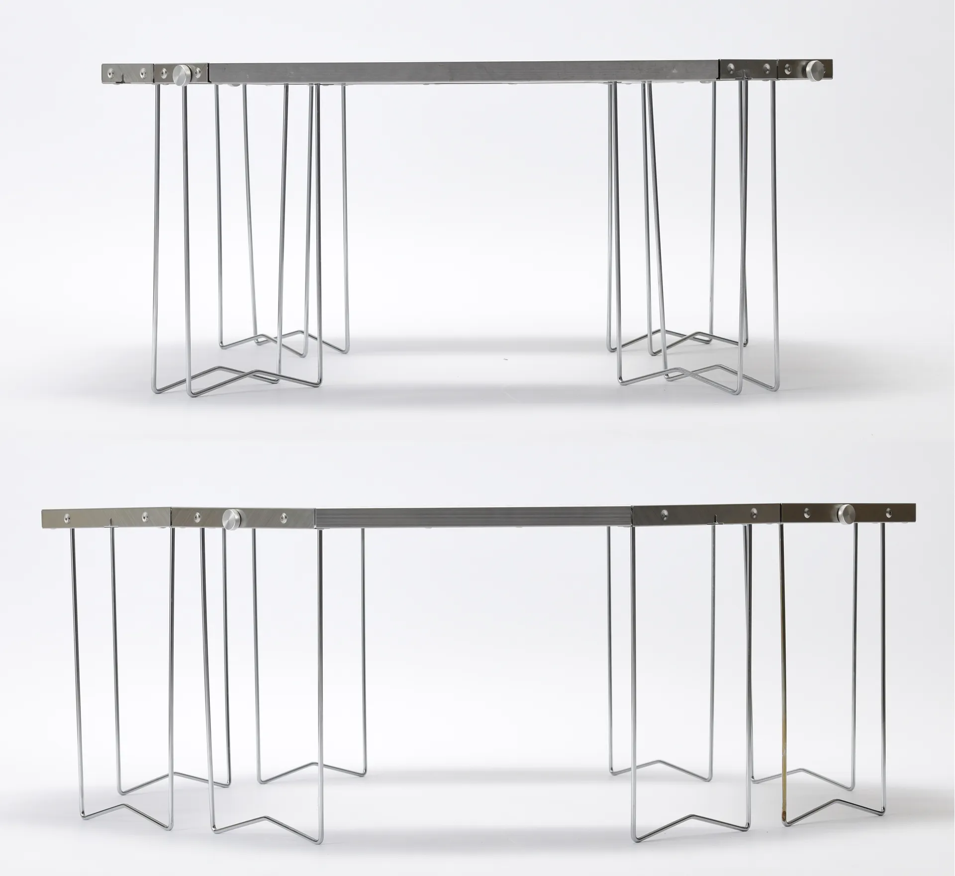 This table is compatible with both the Large, and Small Fireplace by simply installing the pieces facing in, or facing out.