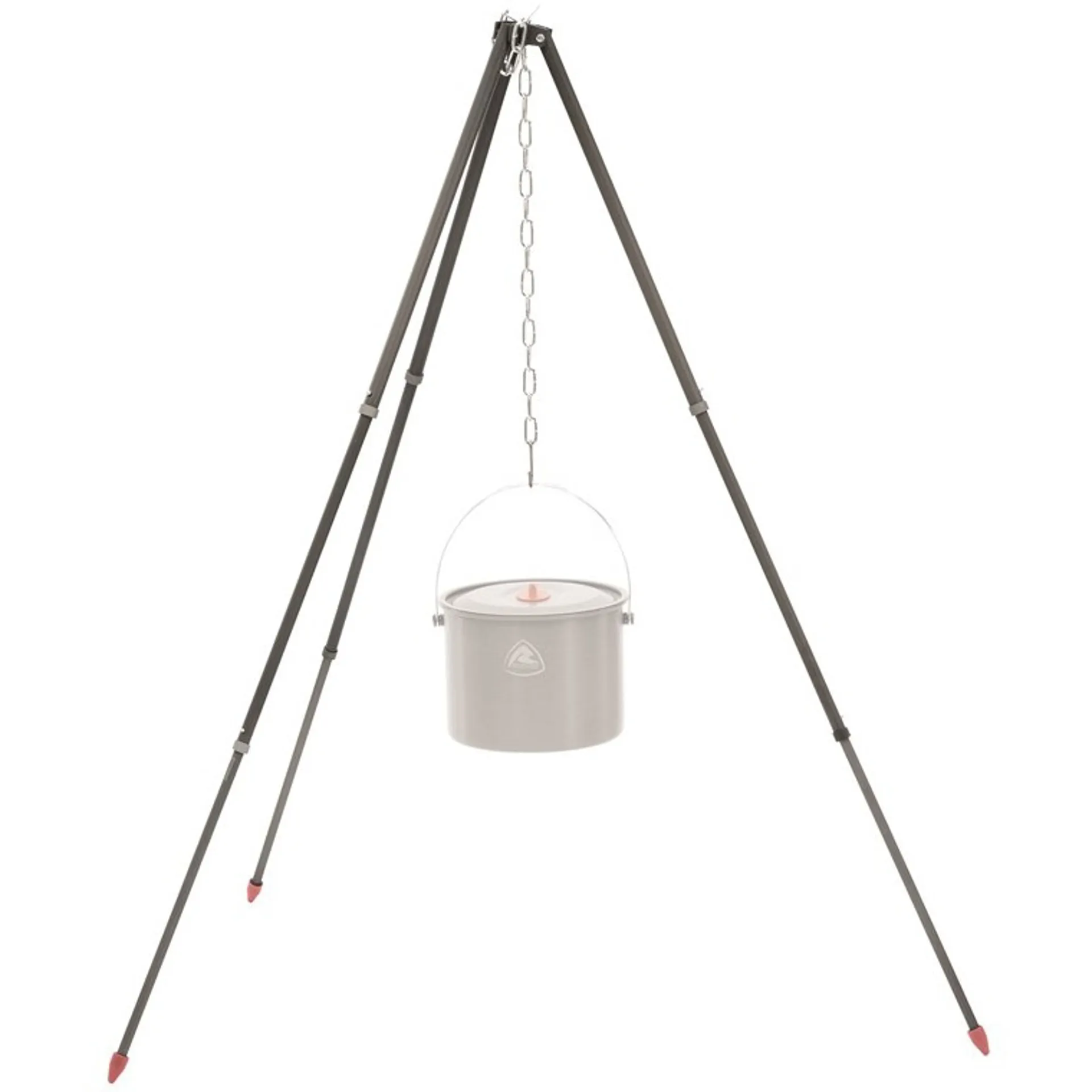 The compact aluminium tripod is perfect for holding a campfire pot with an adjustable chain length