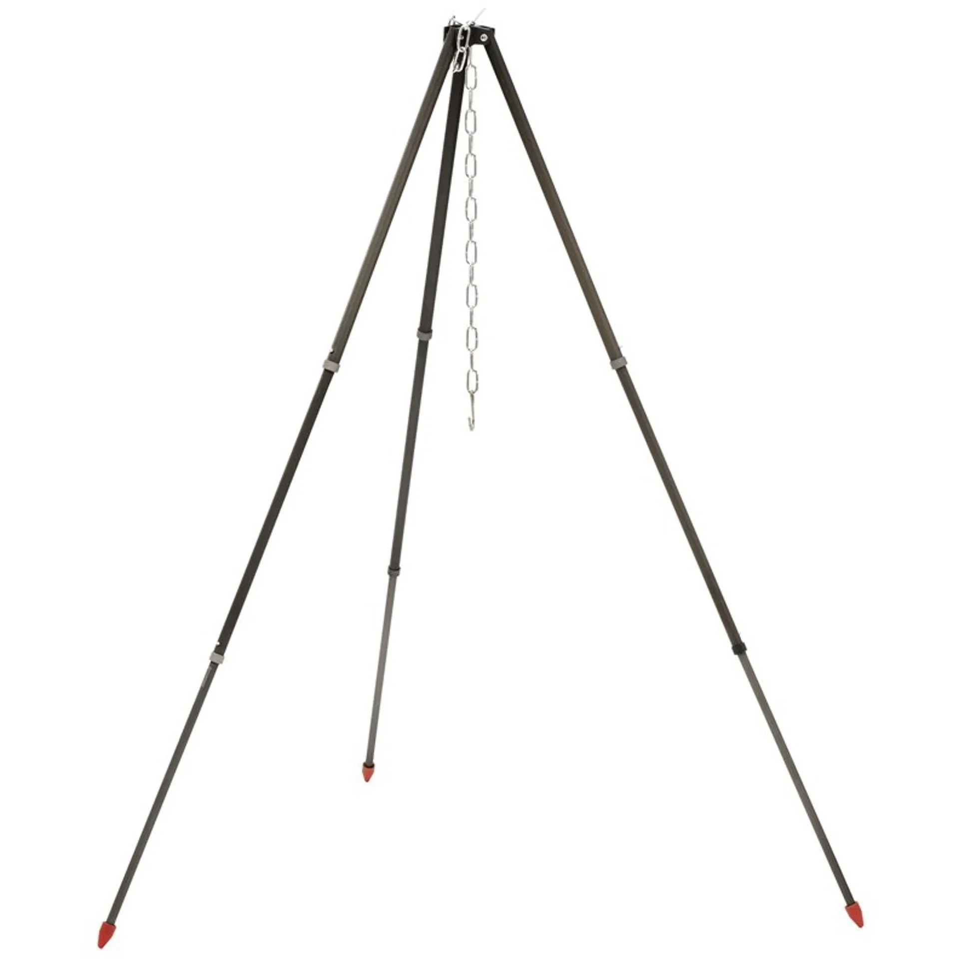 The compact aluminium tripod is perfect for holding a campfire pot with an adjustable chain length allowing you to change cooking height. When not in use the tripod can be stored in the carrybag supplied.