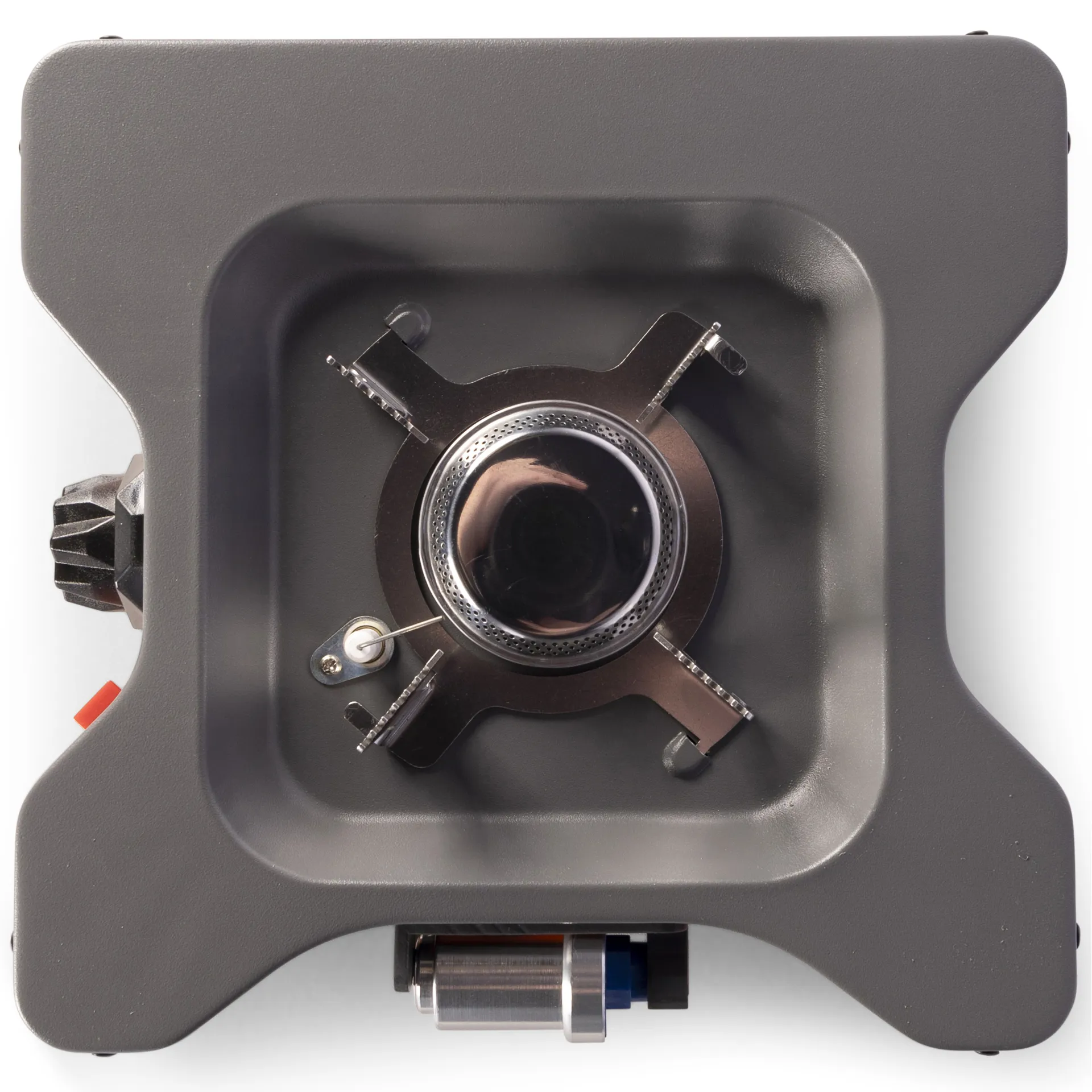A compact, powerful camping cooker for outdoor meals, featuring a 2.4kW stainless steel burner, piezo ignition, and EN417 gas cartridge compatibility.