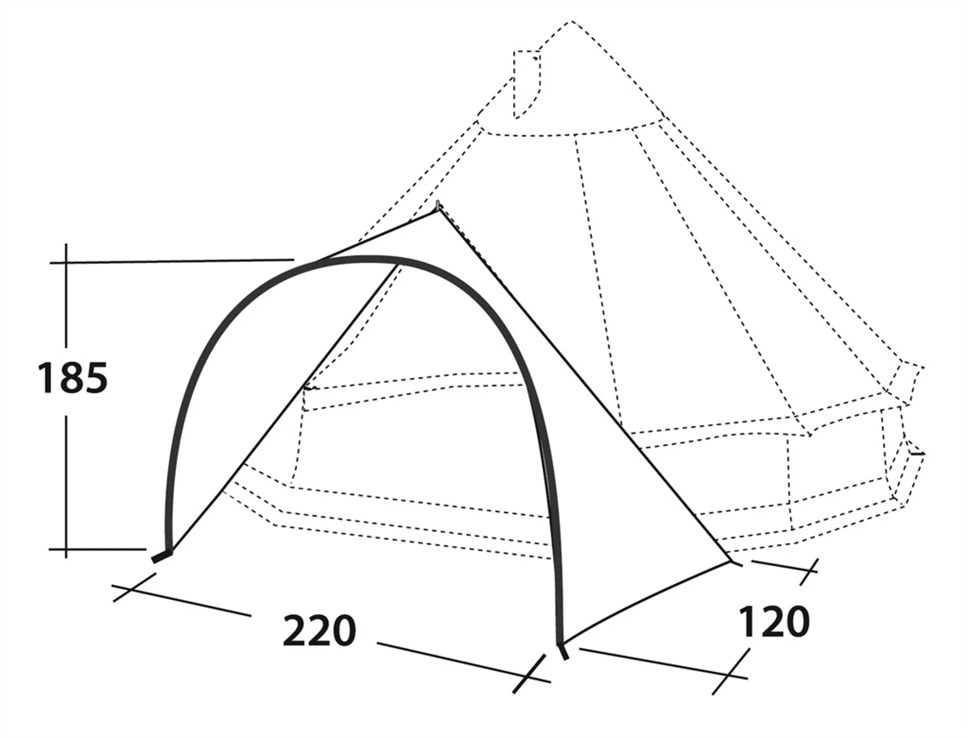 The front uses a sturdy steel hooped pole for stability, and adjustable pegging points take care of uneven ground conditions.