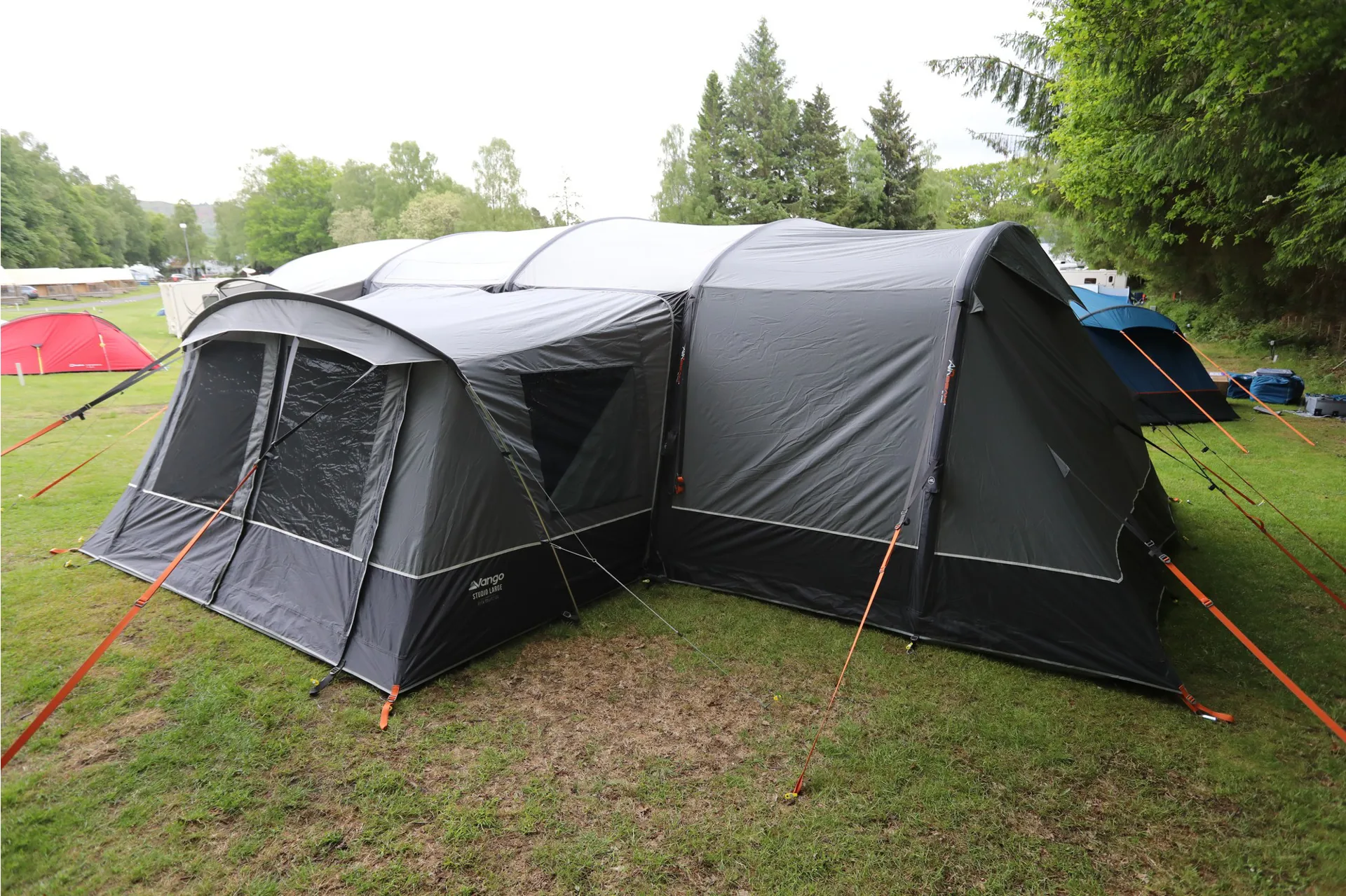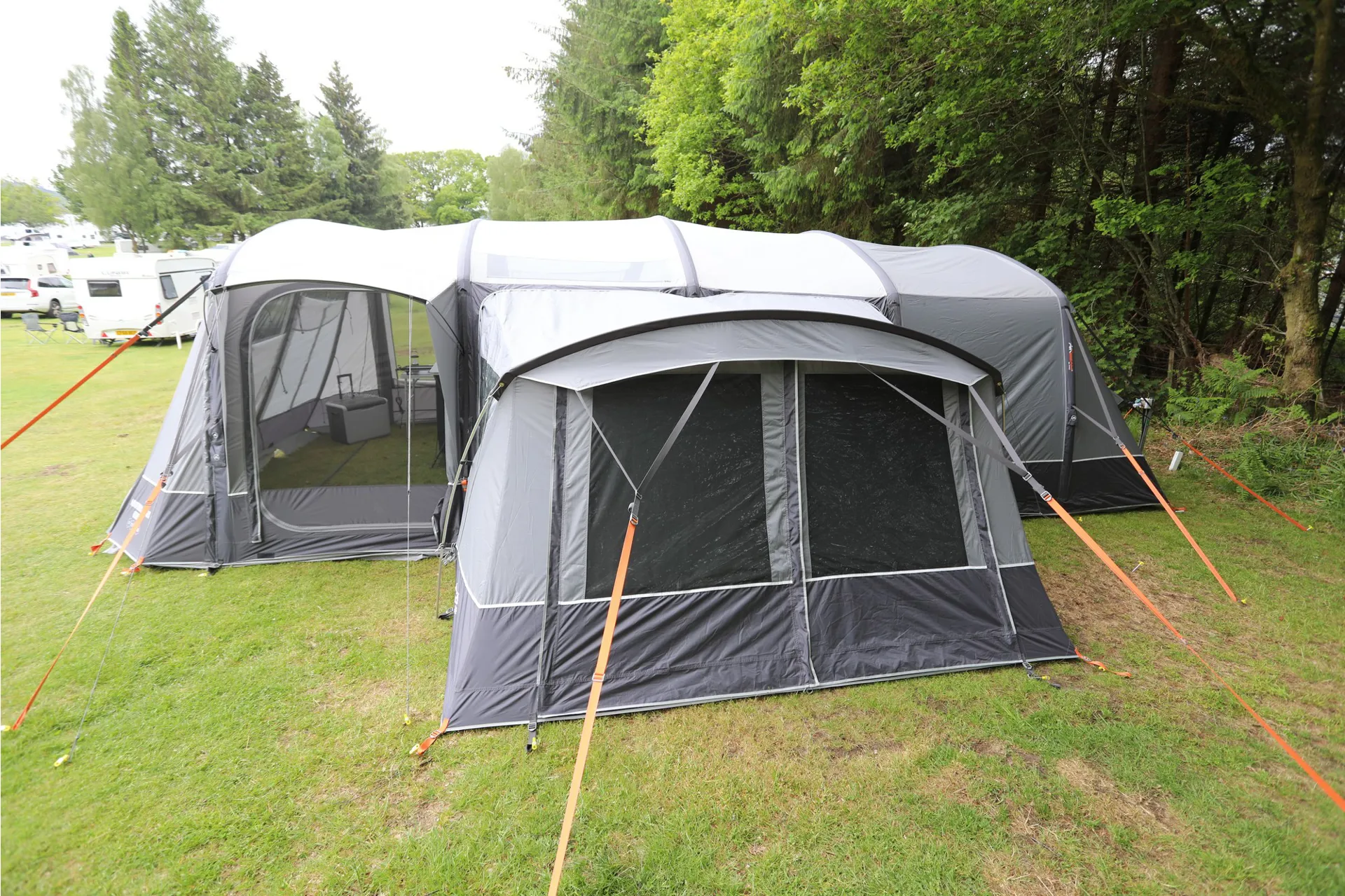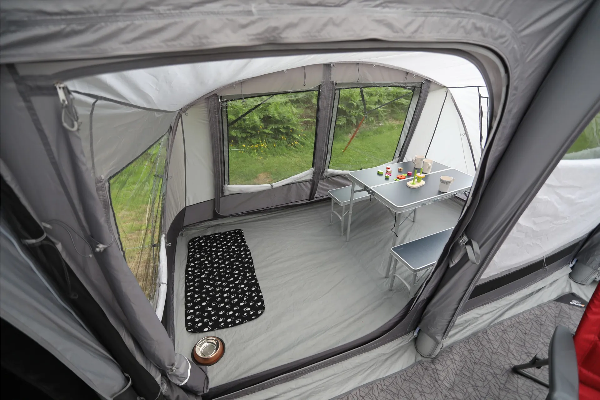 The Vango Studio attaches to the side panels of the Anantara to expand the tent's living space.