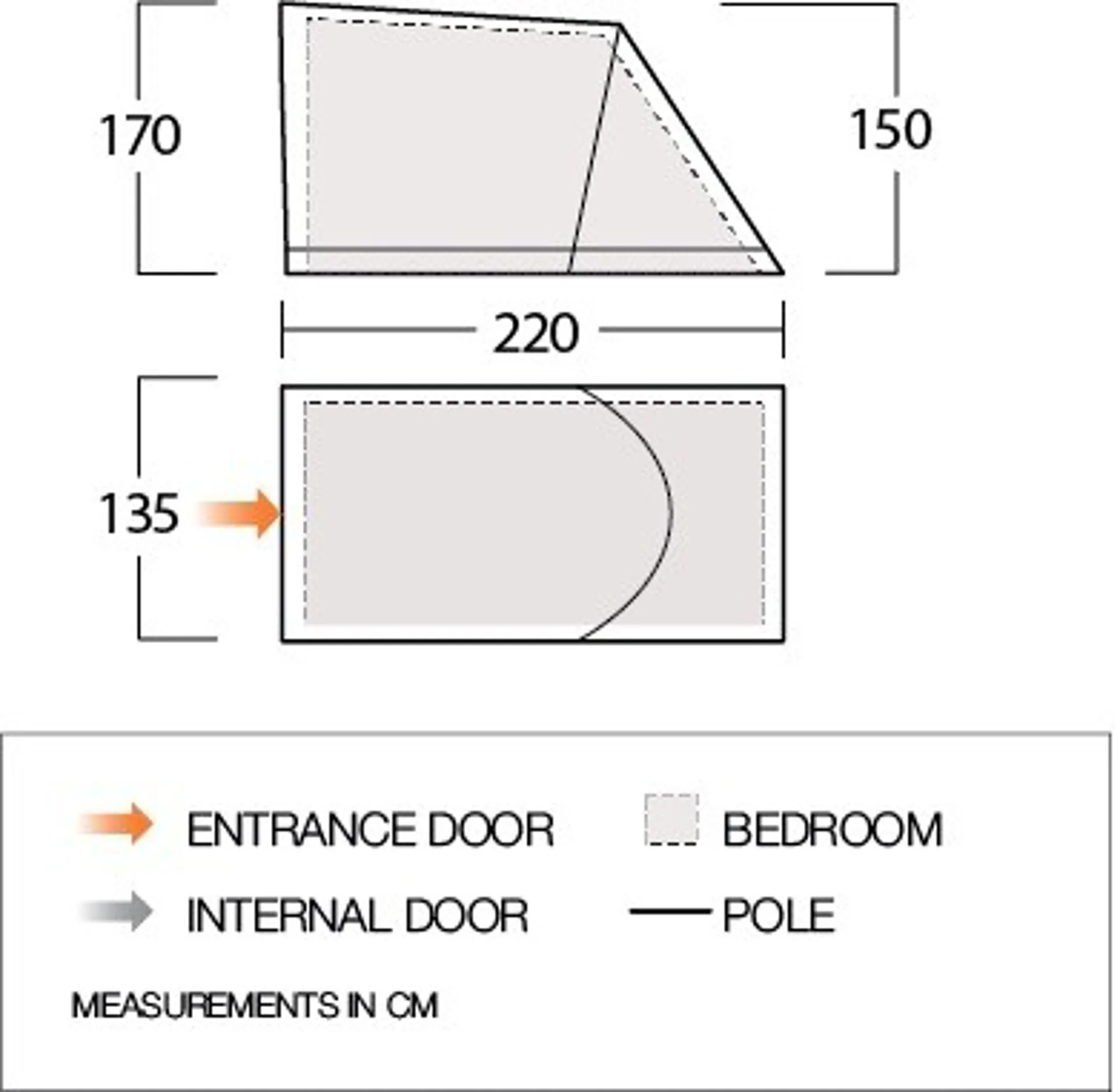 The upright walls and waterproof, fully sewn-in groundsheet makes it the perfect storage area, or additional bedroom with the included inner tent.