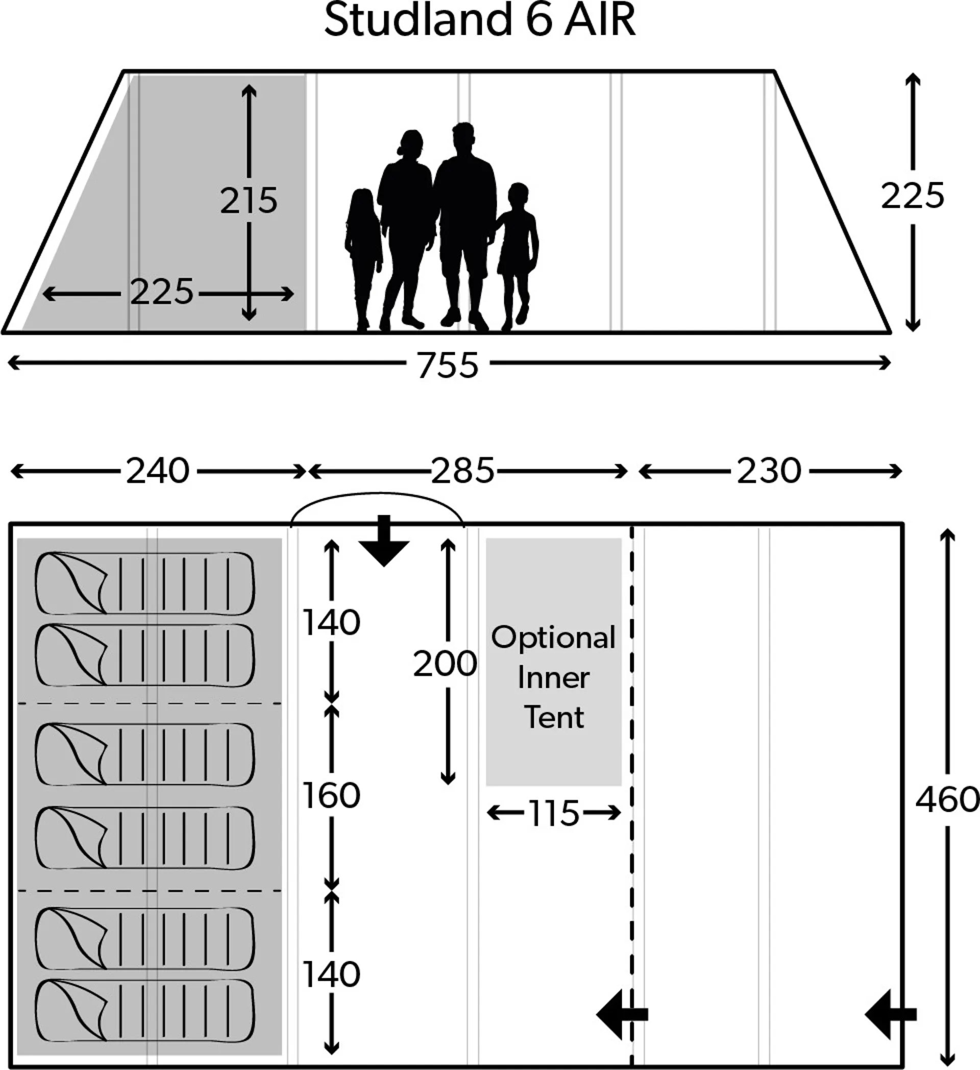 For added comfort, an additional Footprint can be pitched first to help you pitch your tent in the correct spot first time and prevent the underside getting dirty or wet, or the addition of a Fleece Carpet provides under foot comfort and warmth. For extra storage space, an Annexe can be attached to the side door or for extra sleeping space, a two person Inner Tent can be pitched in the living area.