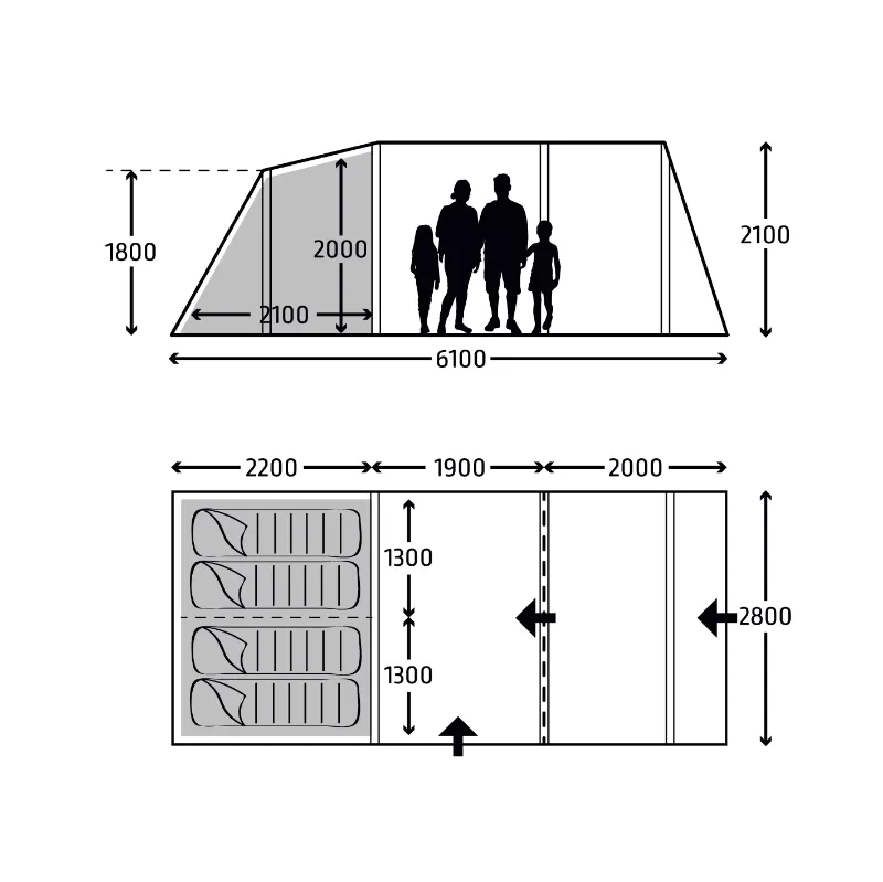 • Type of tent: Two room tunnel