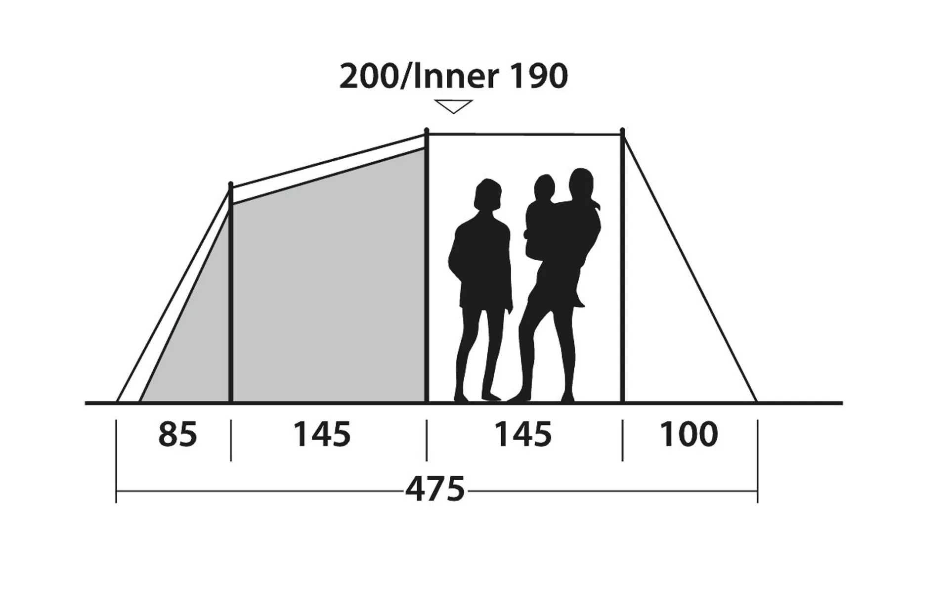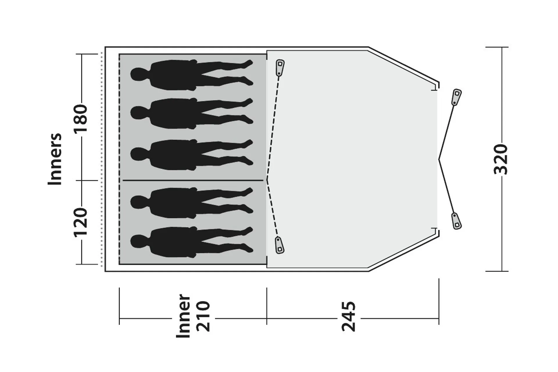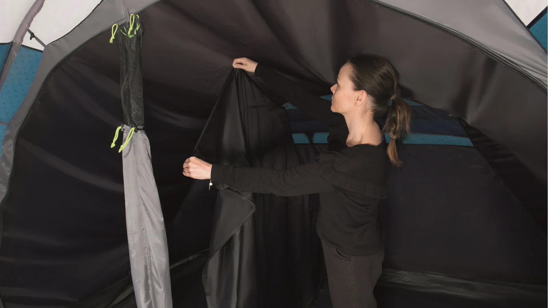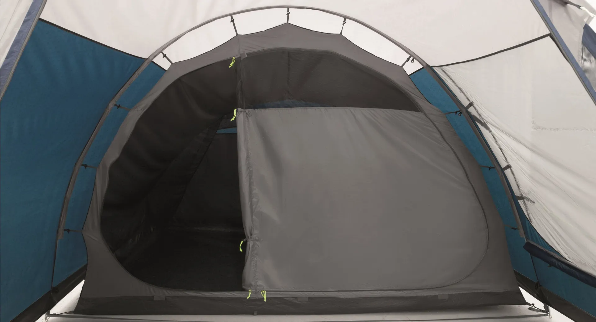 A toggle in bedroom divider can be removed to create one large bedroom and for flexible access and privacy, one half of the door can be rolled away to the side or both doors can be fully opened to the middle to create a open, spacious bedroom. Rather than the industry standard of 60cm width per person for sleeping compartments, Outwell Sleep Comfort allows 70-80cm for more freedom and suggest that 4 people can settle down comfortably for a great night's sleep.