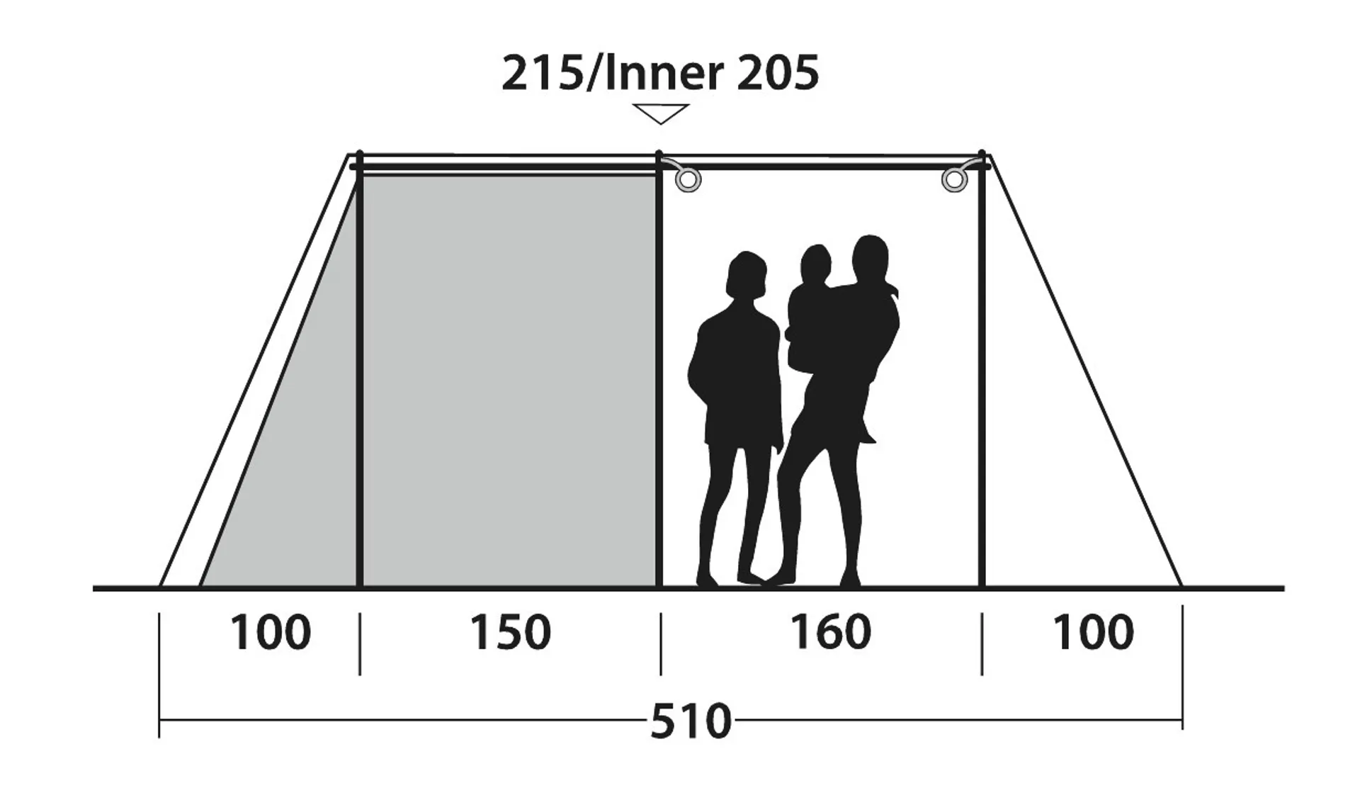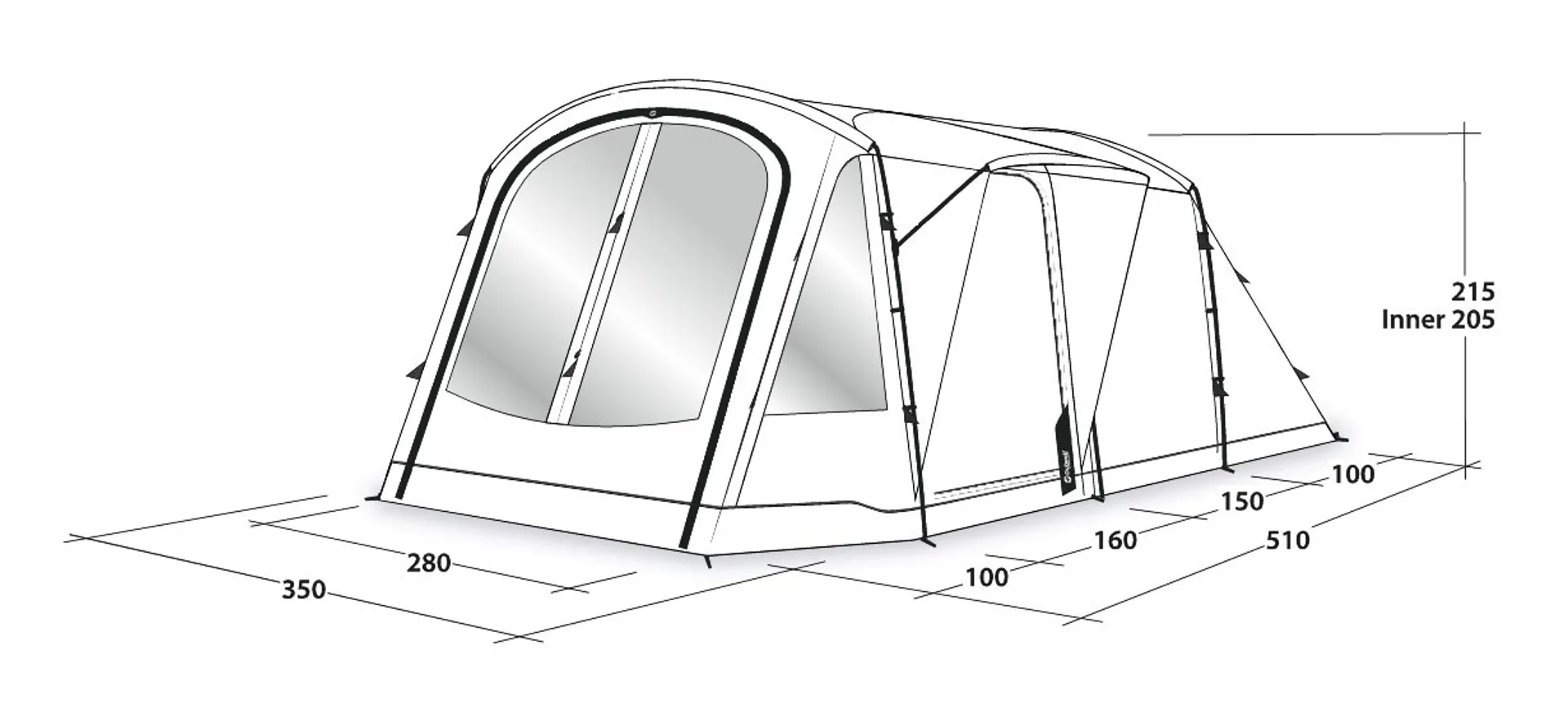 ComfortThe Ambassador Master Bedroom offers generous floor space with a depth of 230cm and full standing height for comfort, easy access and mobility. Extra levels of comfort include storage pockets, mains cable entry points, and darkened roof panel and sides to reduce light penetration and improve sleep quality. Quick & Quiet inner doors to enable you to leave and enter the bedroom without fuss. The silent magnetic strip closure down the centre can be parted easily to slip through and will close automatically without a sound - avoiding the unwelcome sound of zips in the middle of the night. For added safety and preference, the magnetic closure is backed by a zipper.A zipped in bedroom divider can be removed to create one large bedroom and for flexible access and privacy, one half of the door can be rolled away to the side or both doors can be fully opened to the middle. Rather than the industry standard of 60cm width per person for sleeping compartments, Outwell Sleep Comfort allows 70-80cm for more freedom and suggest that 4 people can settle down comfortably for a great night's sleep.