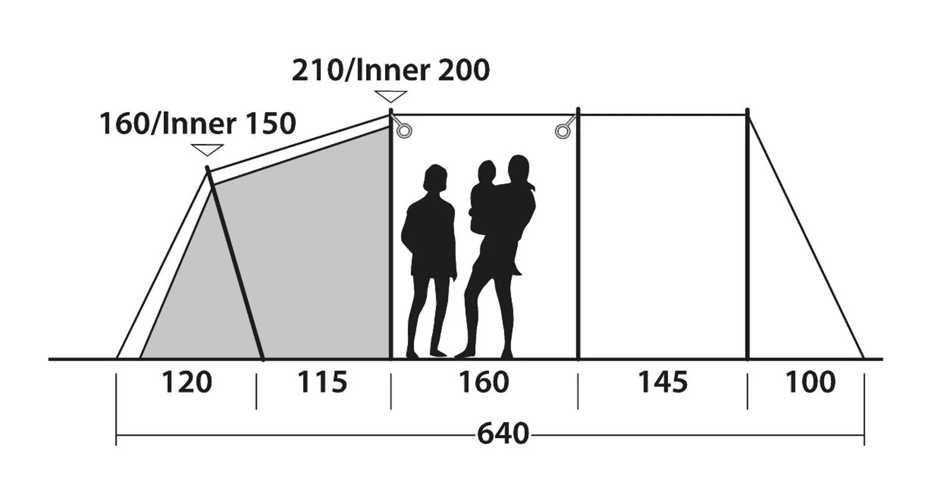 Two toggled bedroom dividers between the varying bedrooms offer the option to create one large bedroom, a bedroom and storage or three separate bedrooms. Rather than the industry standard of 60cm width per person for sleeping compartments, Outwell Sleep Comfort allows 70-80cm for more freedom and suggest that 5 people can settle down comfortably for a great night's sleep.