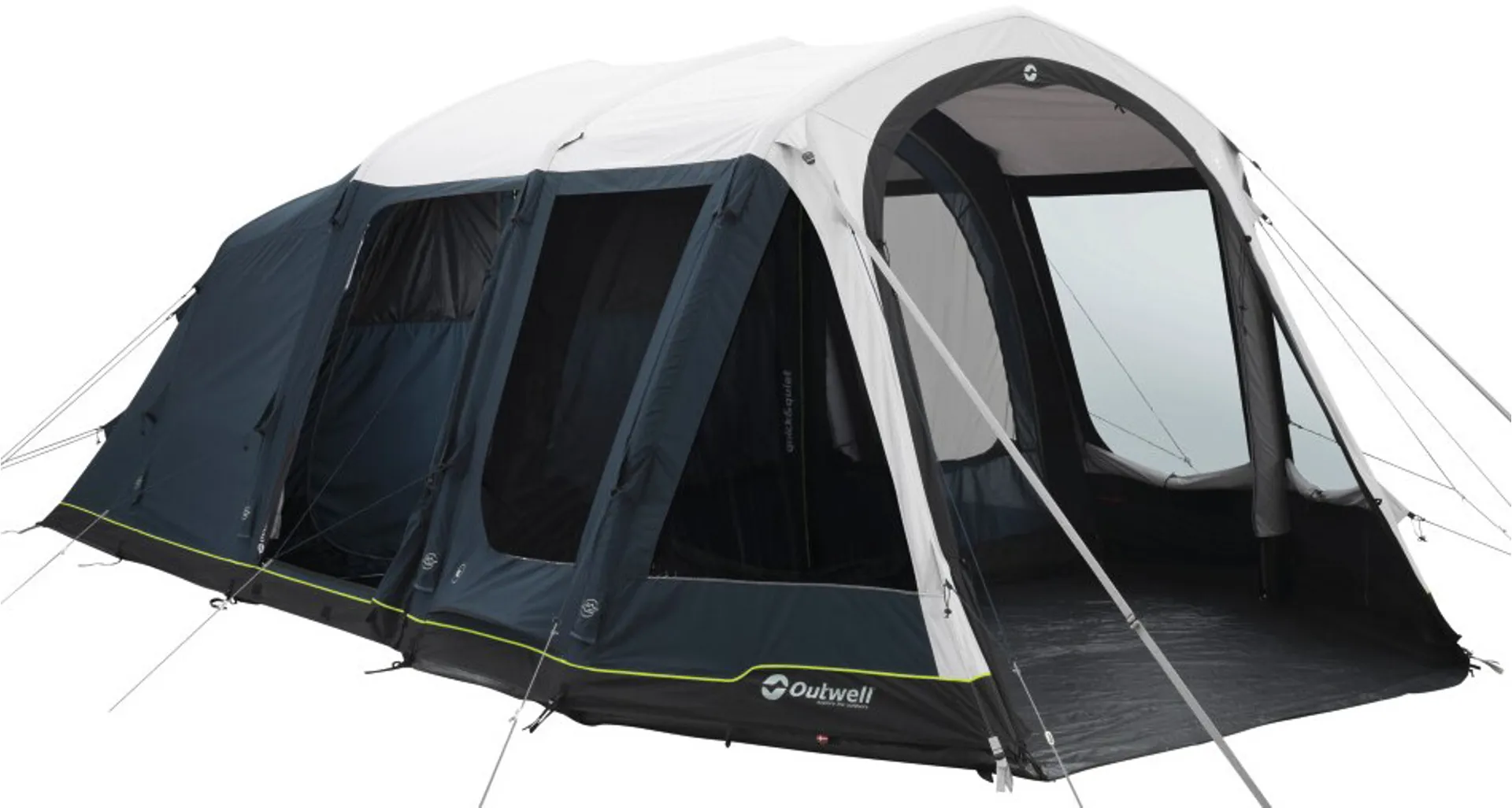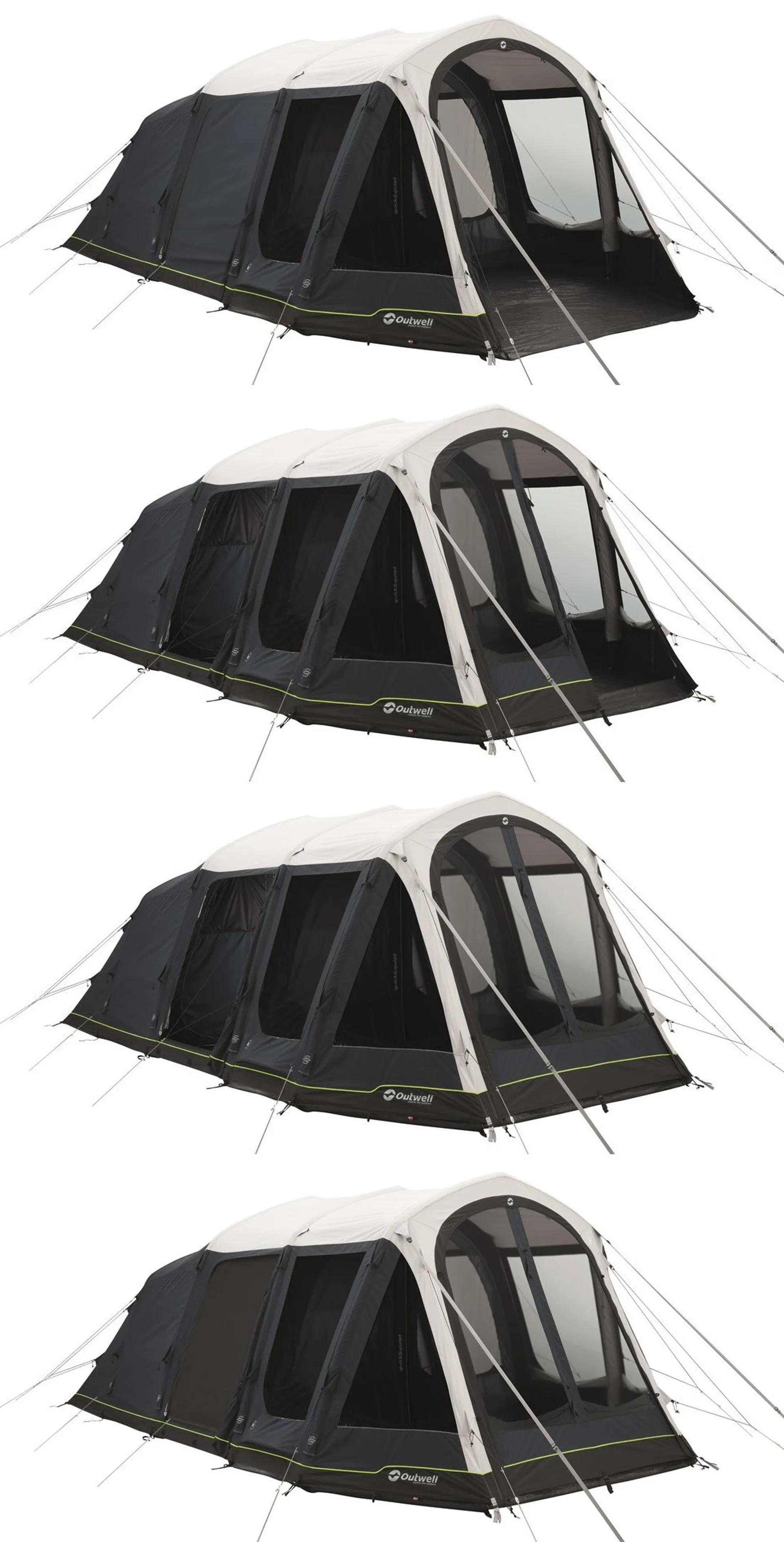 that not only breathes, but regulates internal temperatures, vastly reduces humidity and condensation, and cuts down external noise. Designed for functional outdoor living, Outwell's highly innovative tents offer panorama outlook, ample headroom and are packed with practical, uncomplicated features.