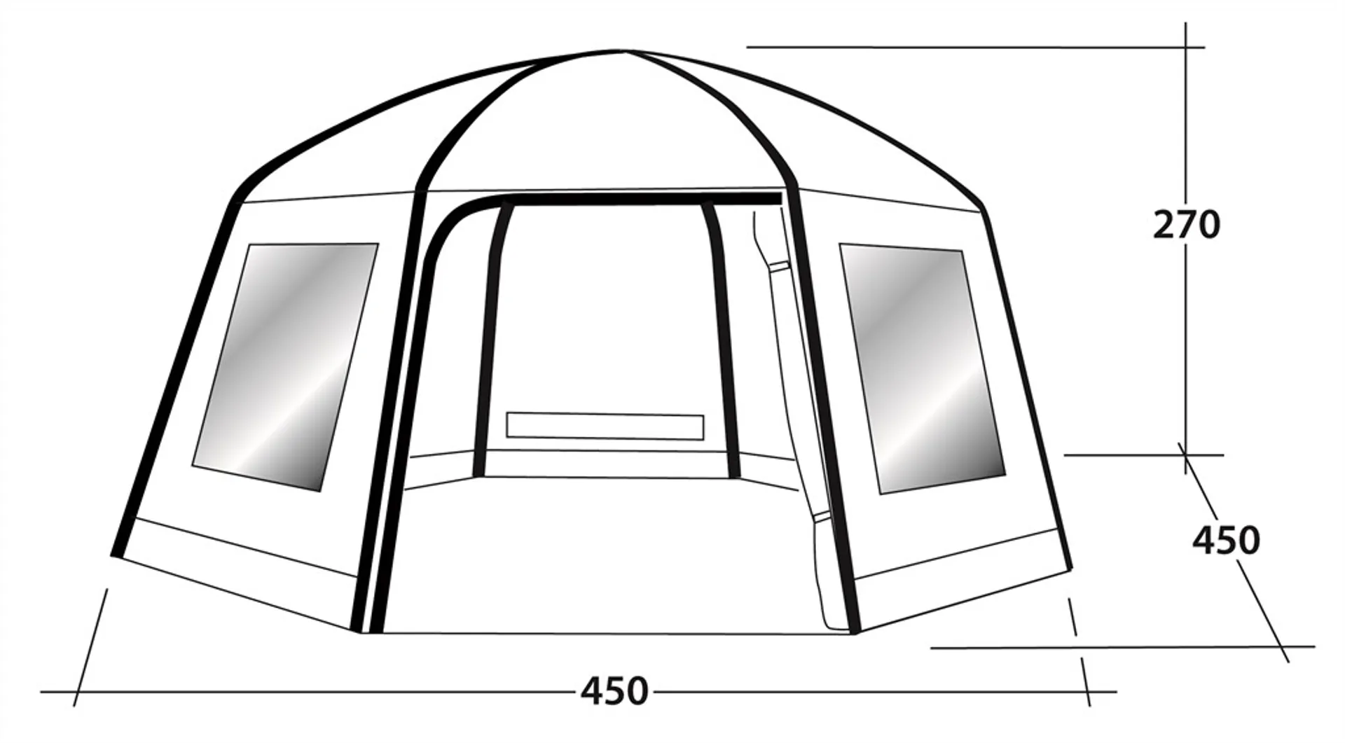 The large front door is backed full a full mesh panel for insect free ventilation, and the three tinted windows feature their own toggle up curtains for privacy. Three rain safe vents also allow for a healthy airflow through the tent.