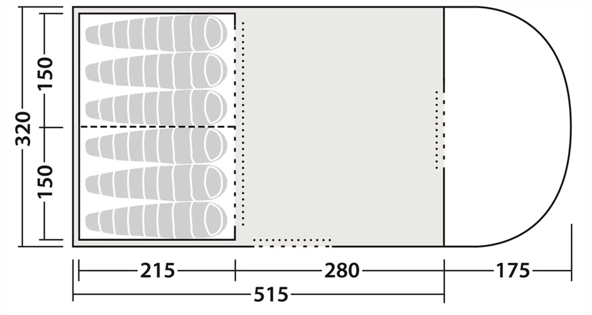 • Groundsheet: Sew-in groundsheet, 210T 100% Oxford Polyester, 10,000mm hydrostatic head