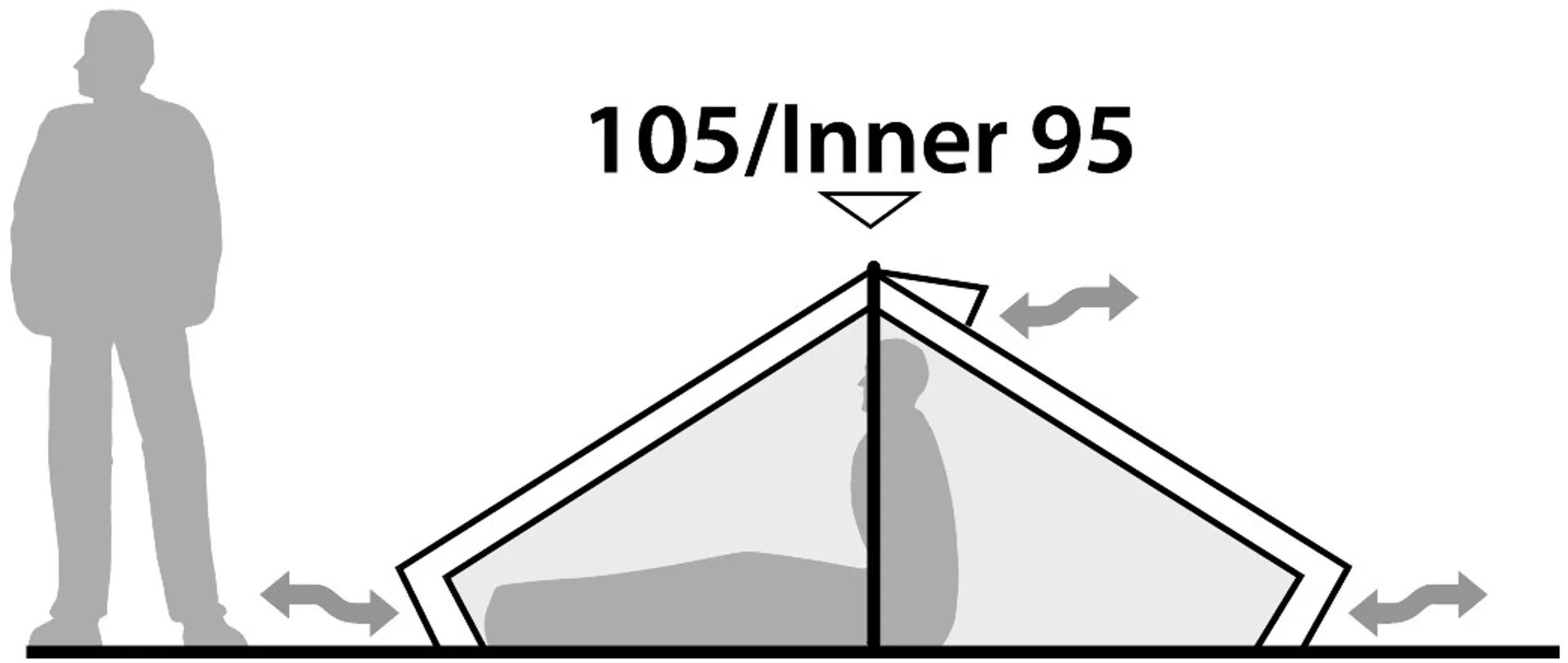 An internal adjustable gear rope at the top of the tent allows you to dry small items of clothing and three, zip close ventilation panels are backed by mesh for insect free ventilation.