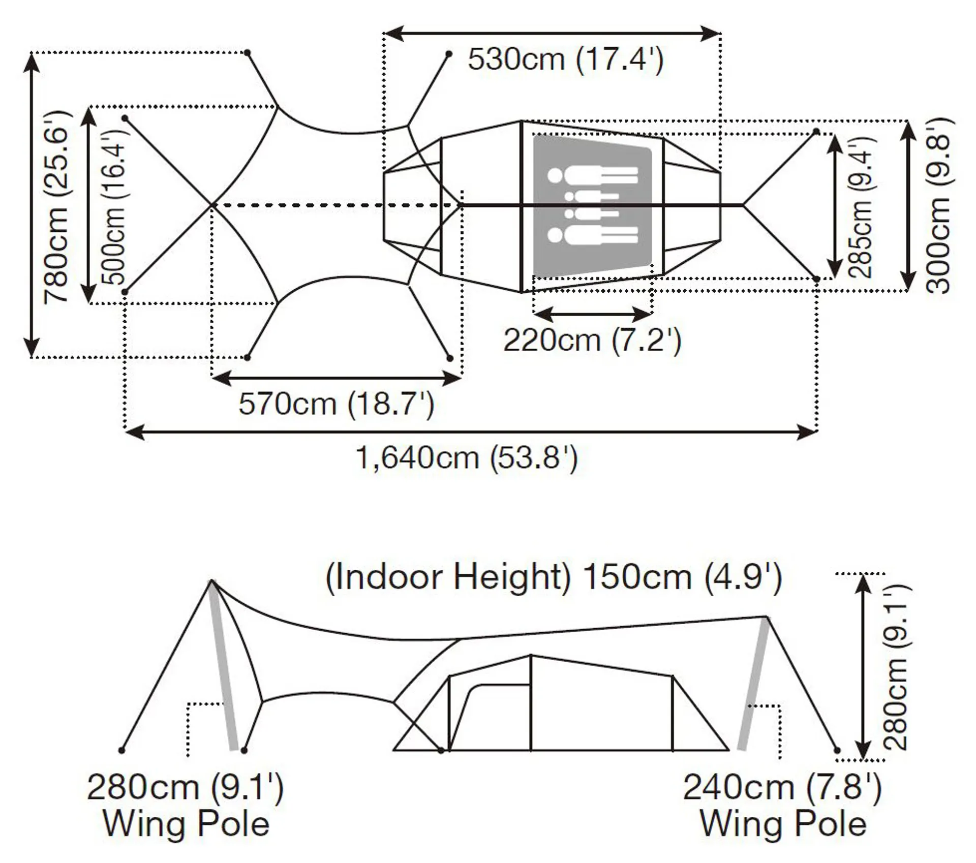 • Inner tent area: 285 x 220cm
