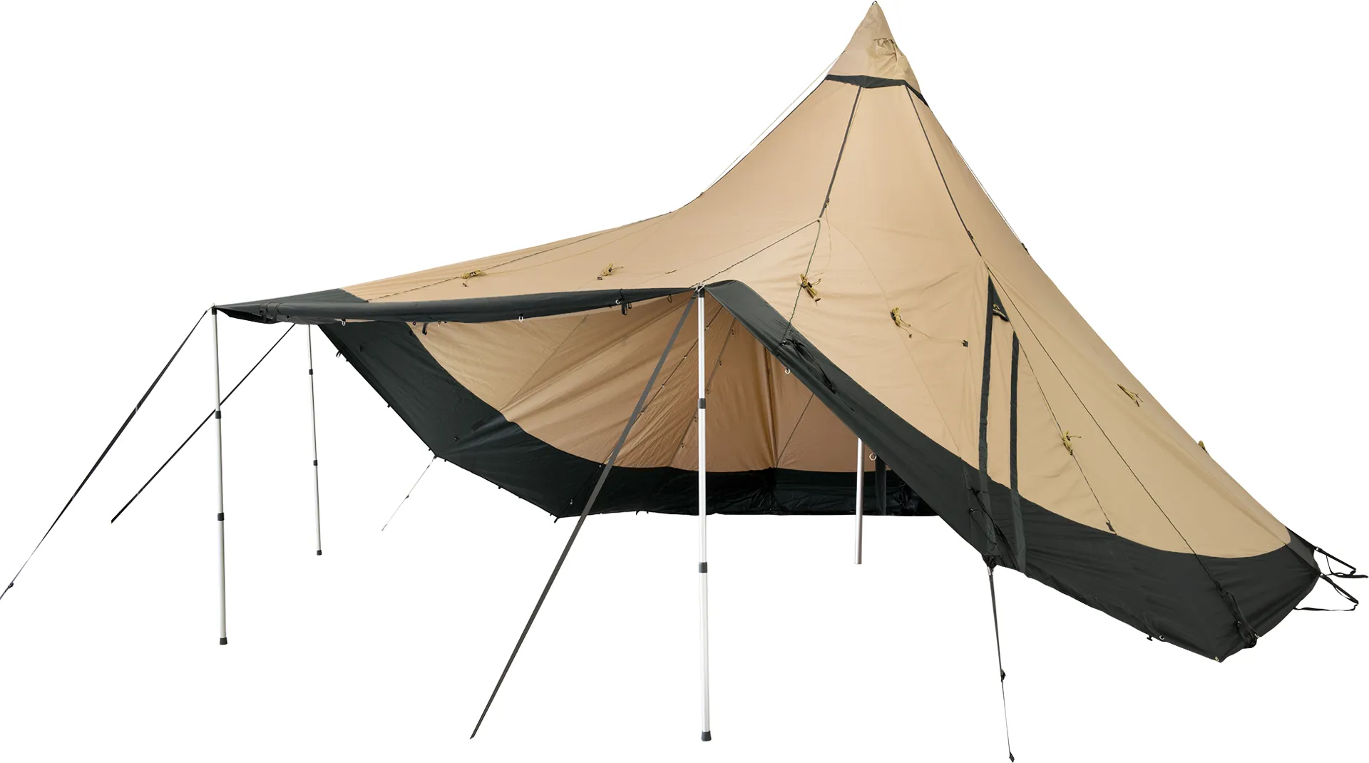 Designed to be used on its own. This tipi is ready for use with a floor via adjustable floor tensioners.