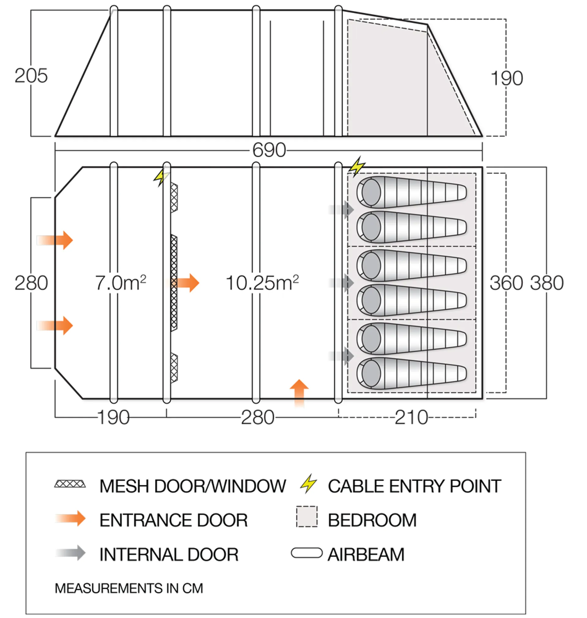 Quick and easy to pitch via the AirSpeed valves, the AirBeam structure is pre-angled to achieve greater internal space and stability against side wind.