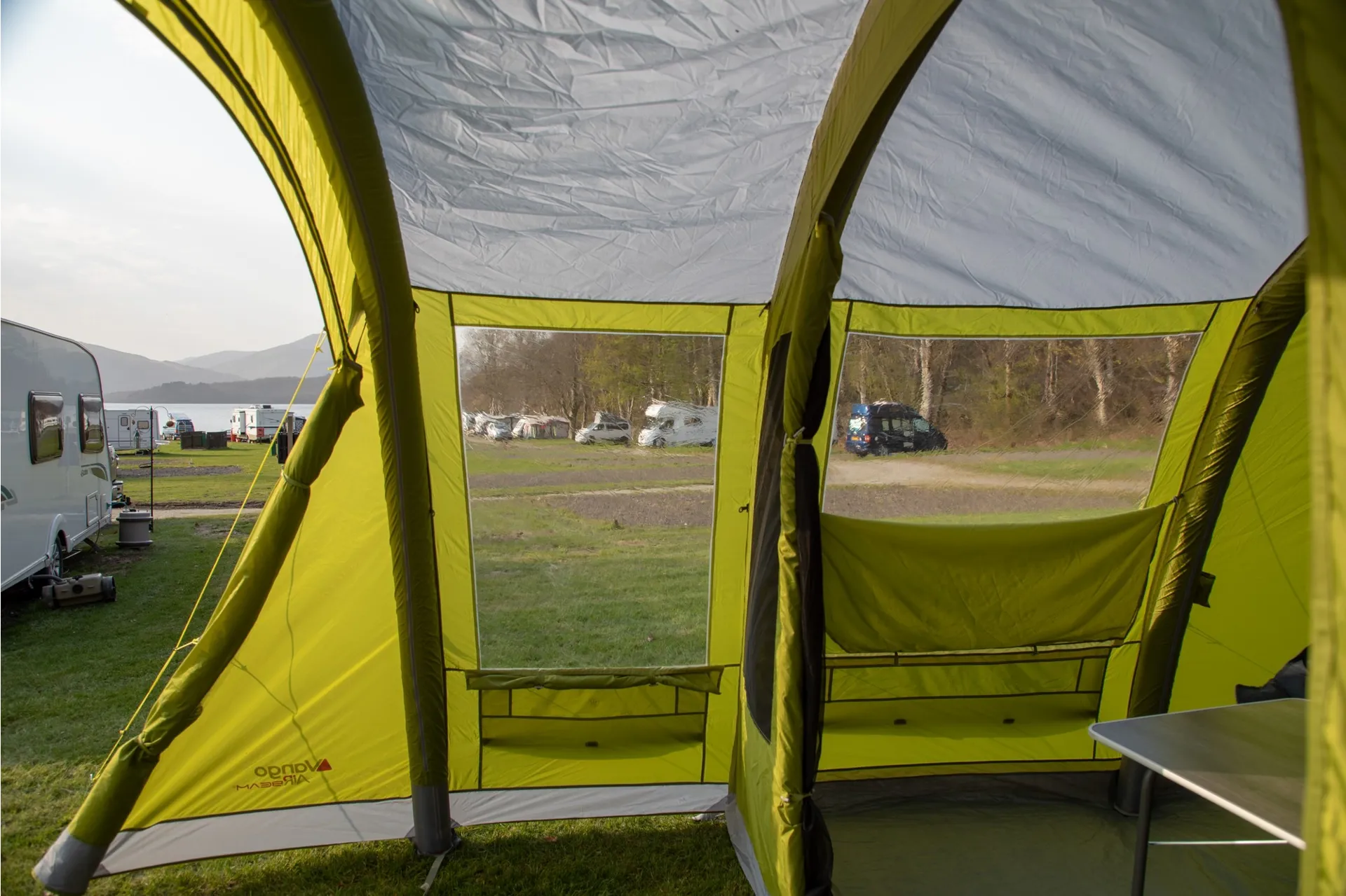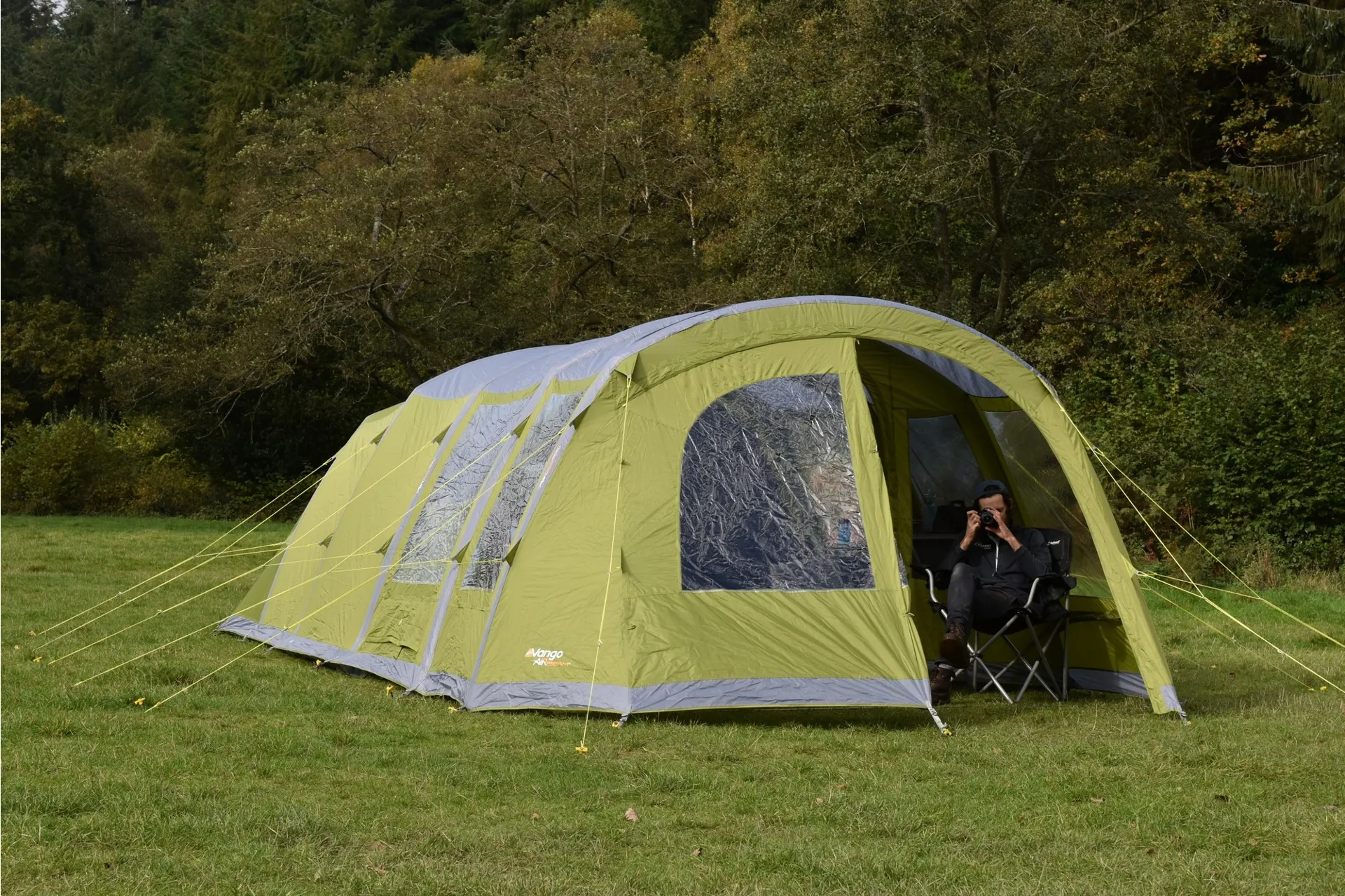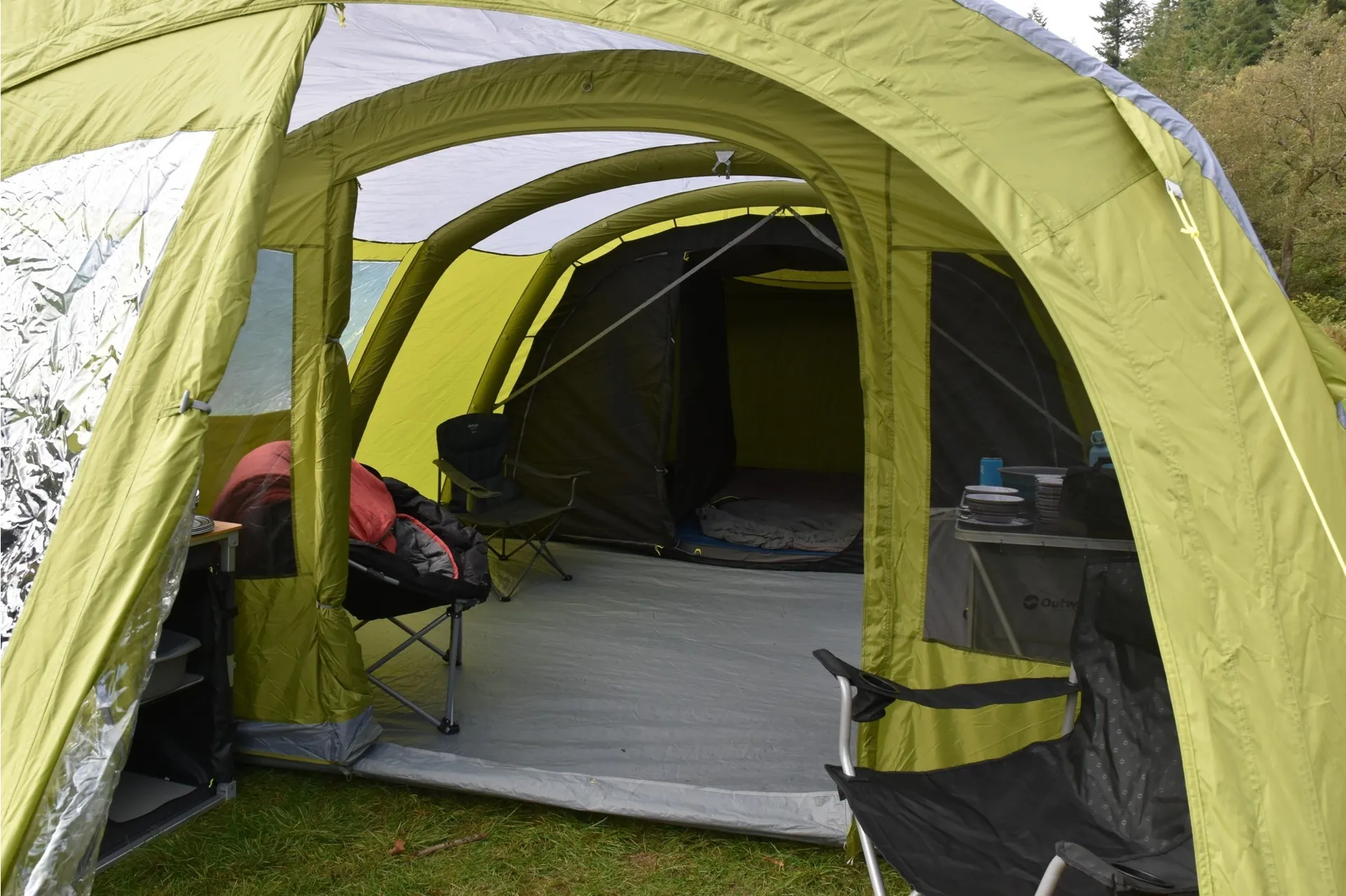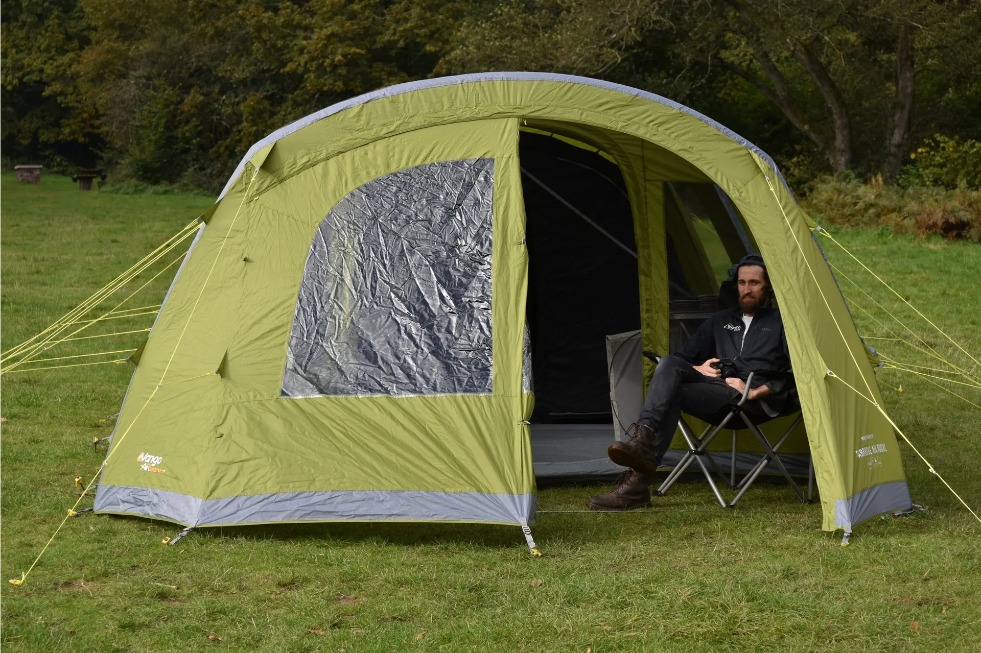 The Vango Stargrove II Air 600XL offers plenty of room for up to 6 people in its Nightfall bedrooms and features new diamond clear windows.