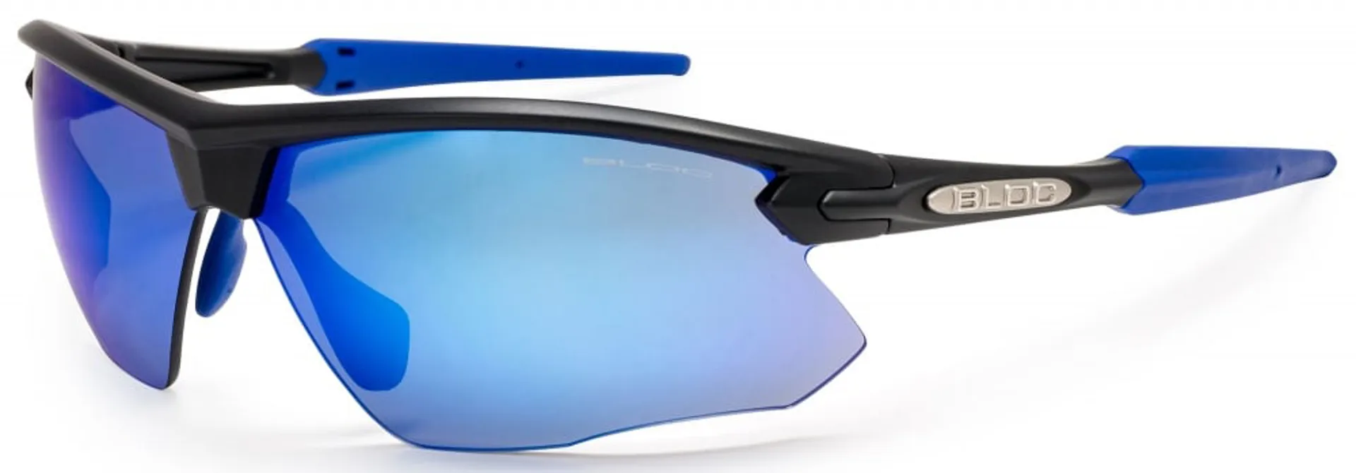 Lightweight and rimless make the Bloc Fox the ultimate sports eyewear sunglasses. Matt Black frame with a blue mirror Category 3 Optical Class 1 impact resistant lens. Features blue soft grip rubber temple tips – designed to reduce slipping and movement during activities. Fully adjustable soft grip blue nose piece ensures the perfect fit. Wide wrap around lens for great peripheral vision and protection on even the sunniest of days.