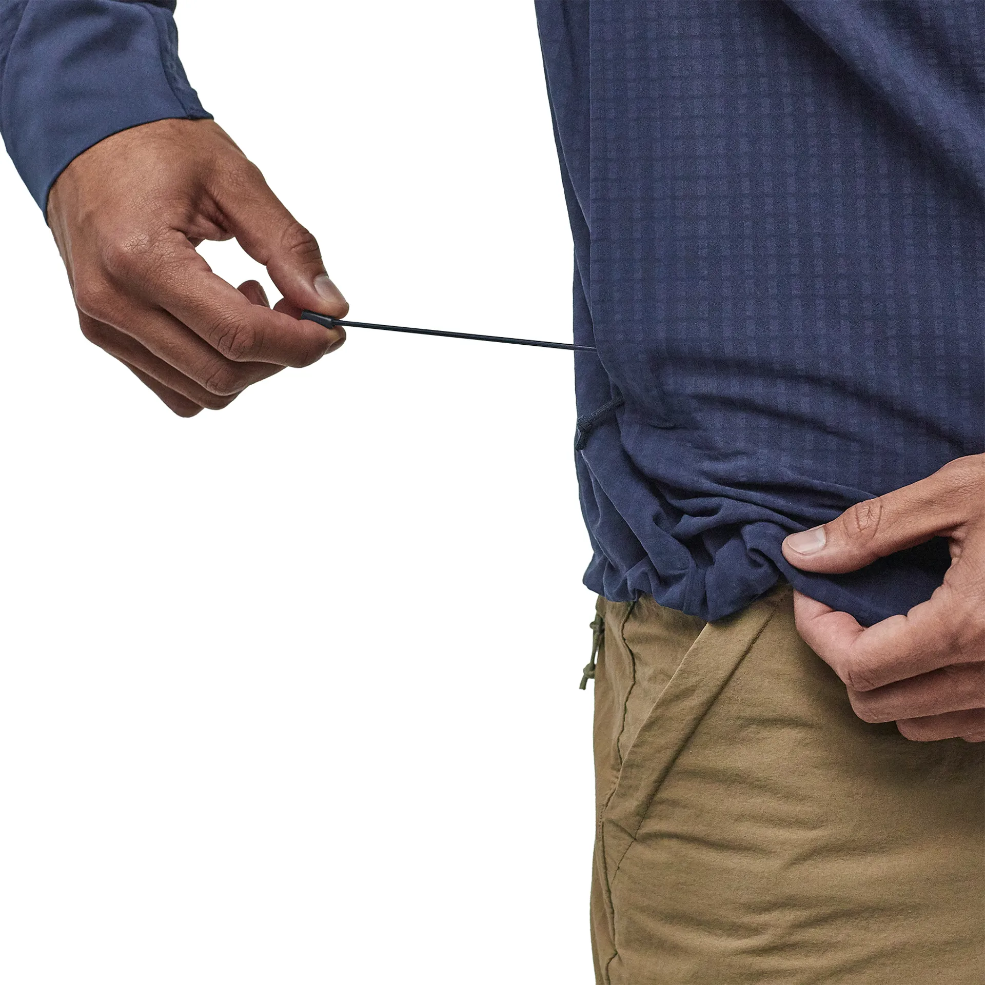 The sleek, low-bulk, easy push-up stretch-knit cuffs are comfortable to wear on the wrists, two zippered hand pockets are mesh lined for ventilation and a hidden hem drawcord helps to keep out the weather.