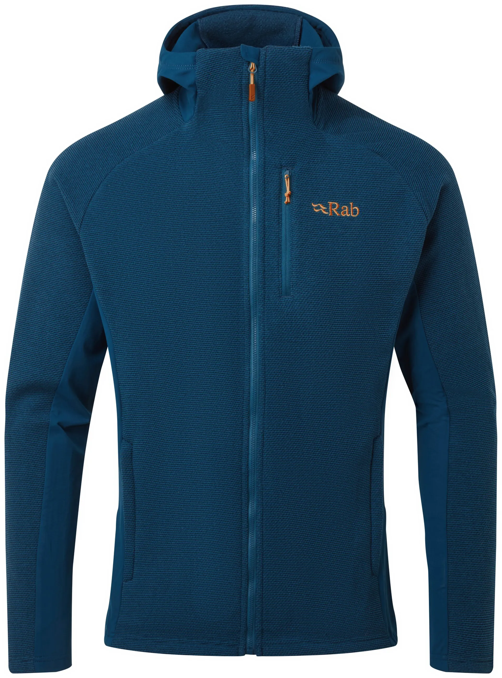 The Rab Men's Capacitor Hoody features double brushed fleece combined with stretch side panels to create a warm, ultra comfortable mid layer for active mountain days.