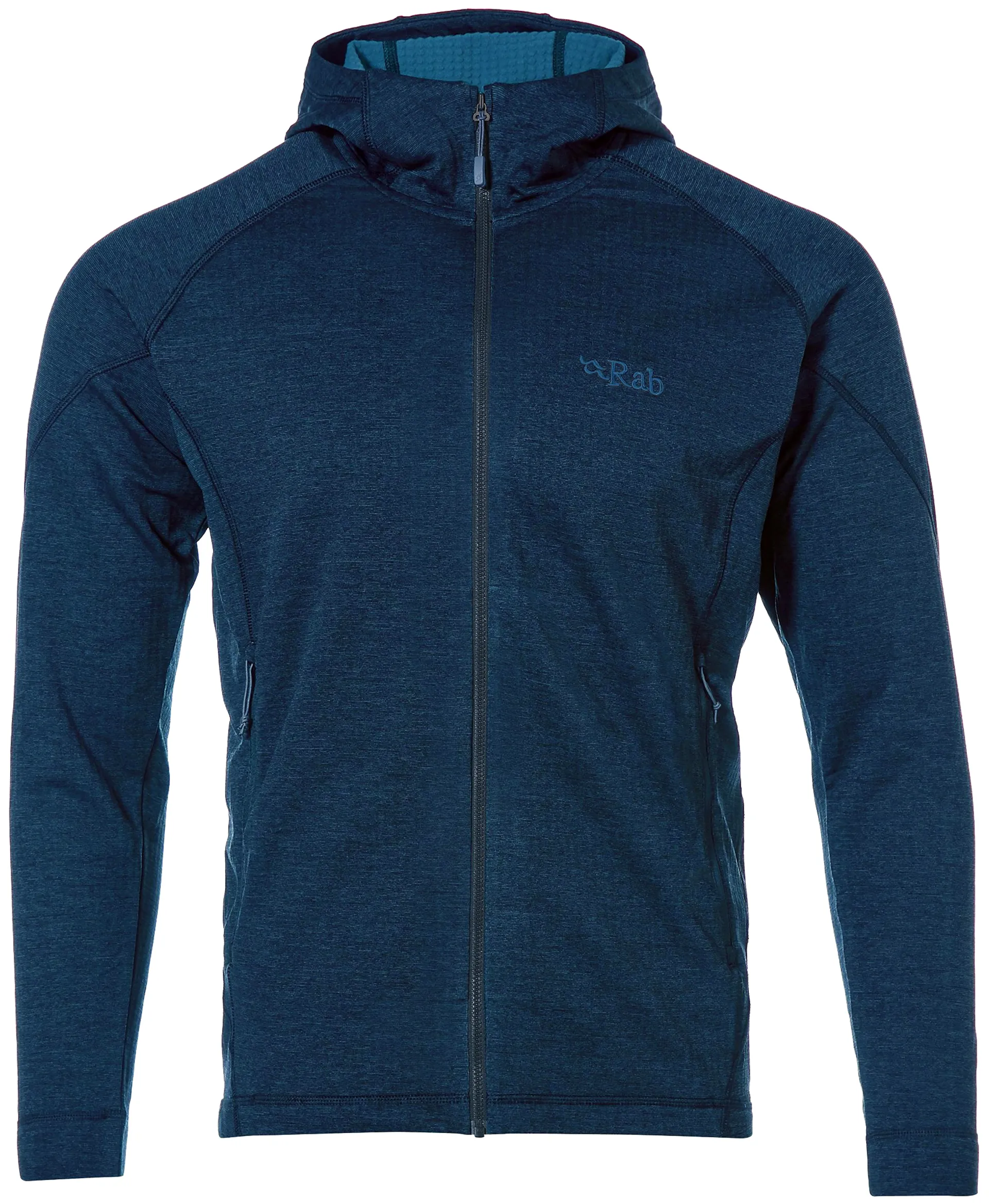 The Men's Nucleus Hoody is constructed from Rab's Thermic Fleece, designed to balance warmth and breathability to keep you comfortable whatever the activity. The YKK front zip allows for ventilation when it gets warm and a YKK zipped chest pocket keeps small personal items safe. Flat-lock, low bulk seams provide next to skin comfort, the regular fit allows you to move freely and the close fit hood sits easily under a helmet.