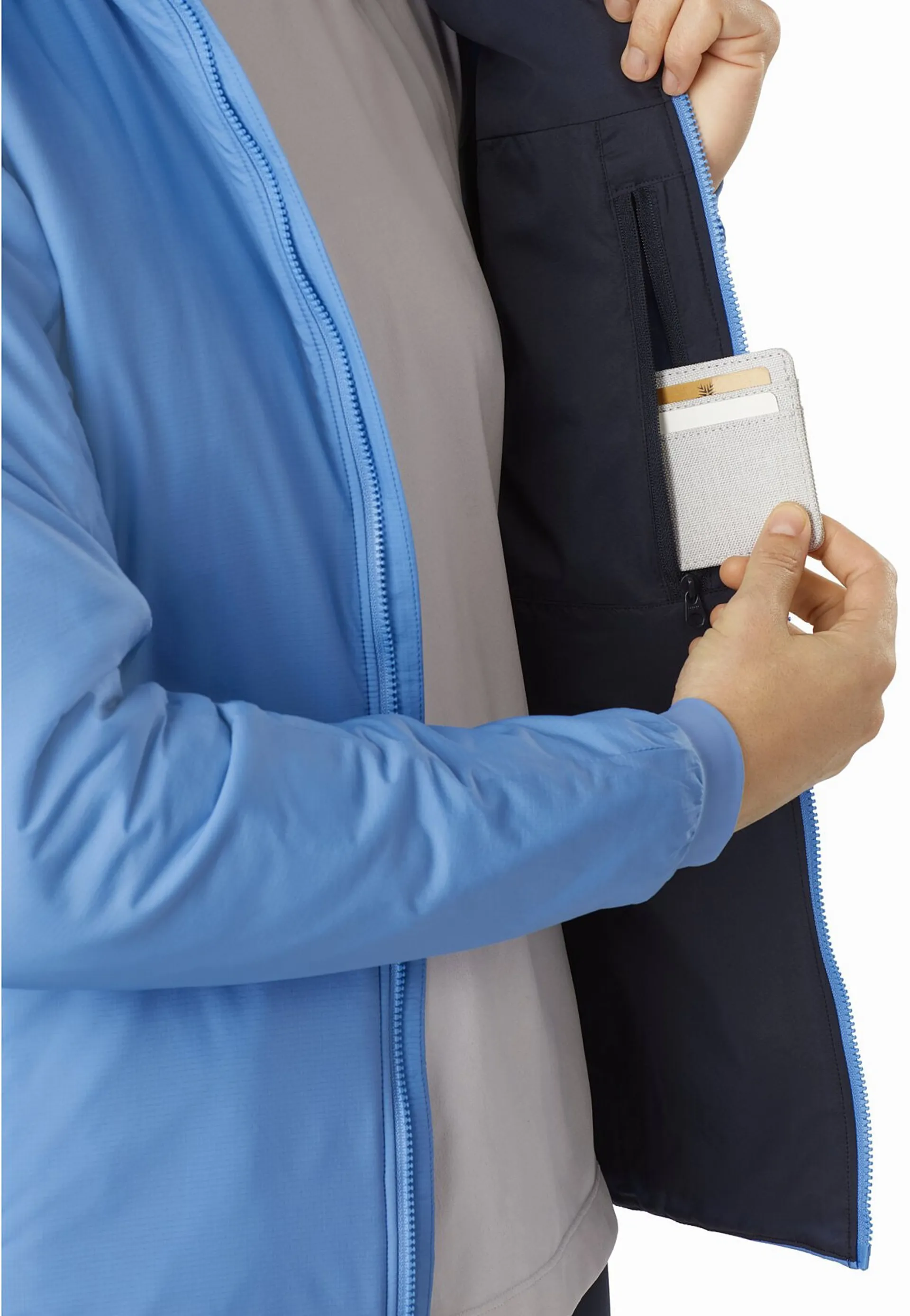 The dropped hem with dual lower hem adjusters keep you protected and the 'No Slip Zip' prevents the zip from self-opening at the collar. Two hand and one internal zippered chest pocket keeps your essentials close.