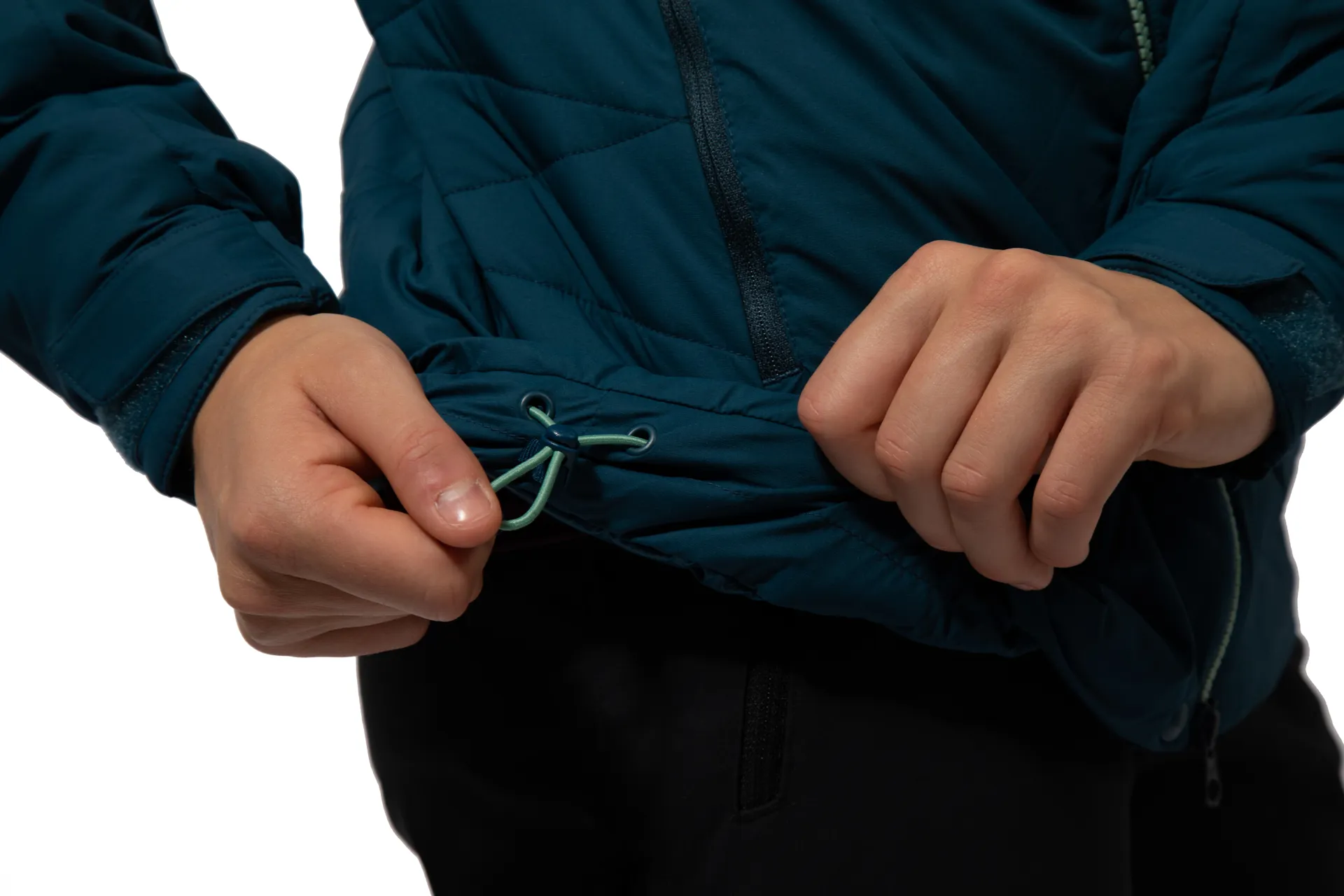 • Adjustable hem with cinchable drawcord