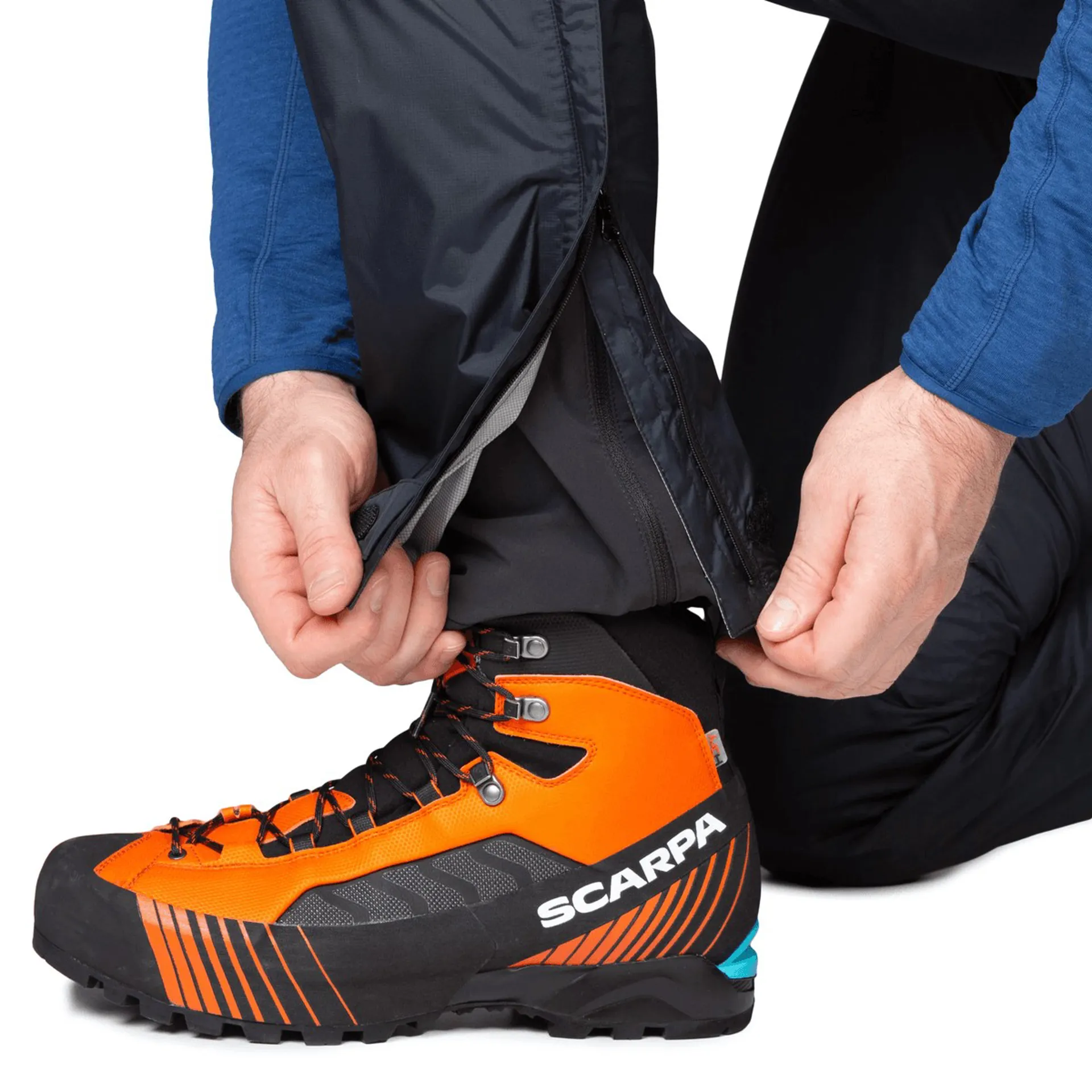 The Mountain Equipment Mens Zeno FZ Pant are lightweight and well fitting full-zip waterproof trousers for trekking in remote locations.