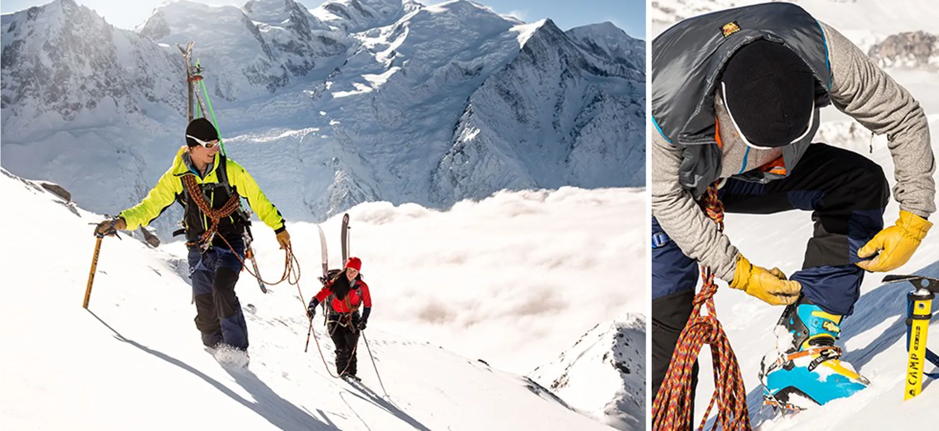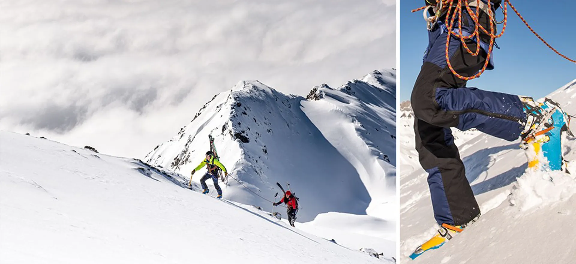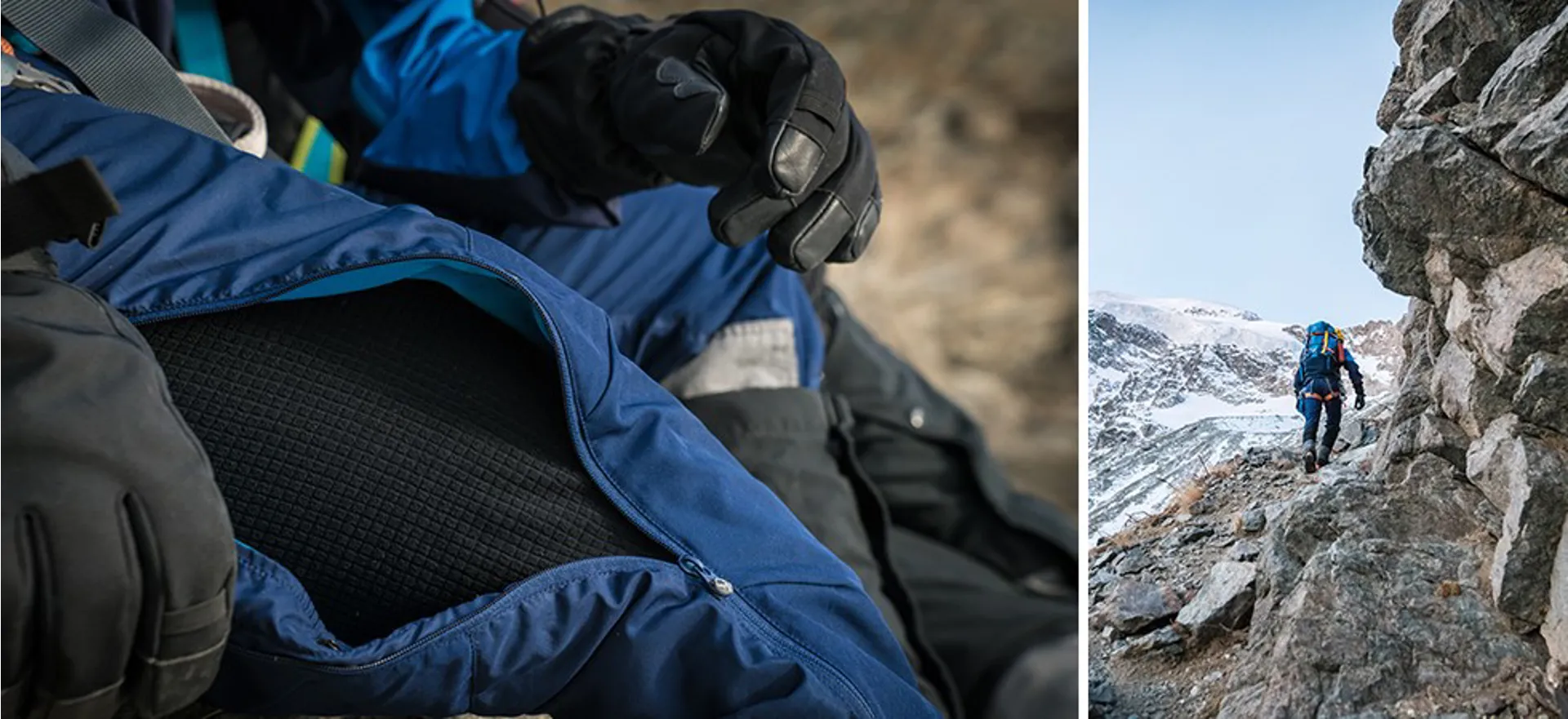 • Tough and durable design using strong, stretch fabric for seat, articulated knee panels and Dyneema® crampon patches.