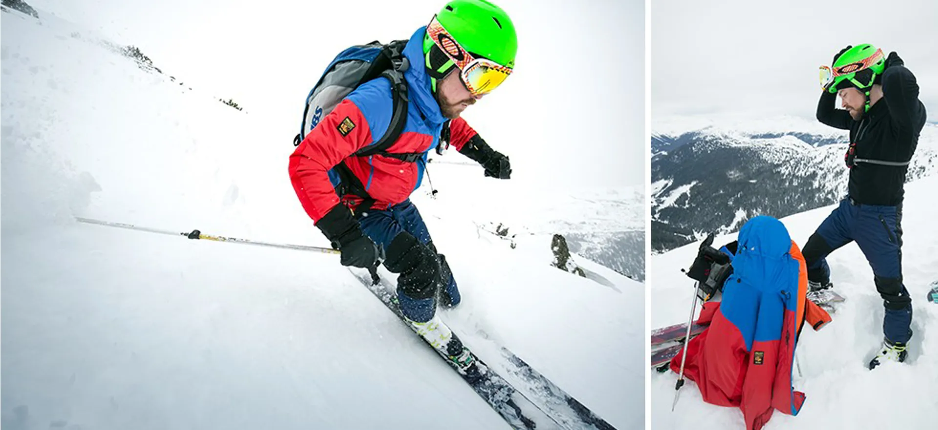 • Minimal bulk under harness from secure fit at waist and hips with high back panel for protection and ‘double pull’ half-belt.
