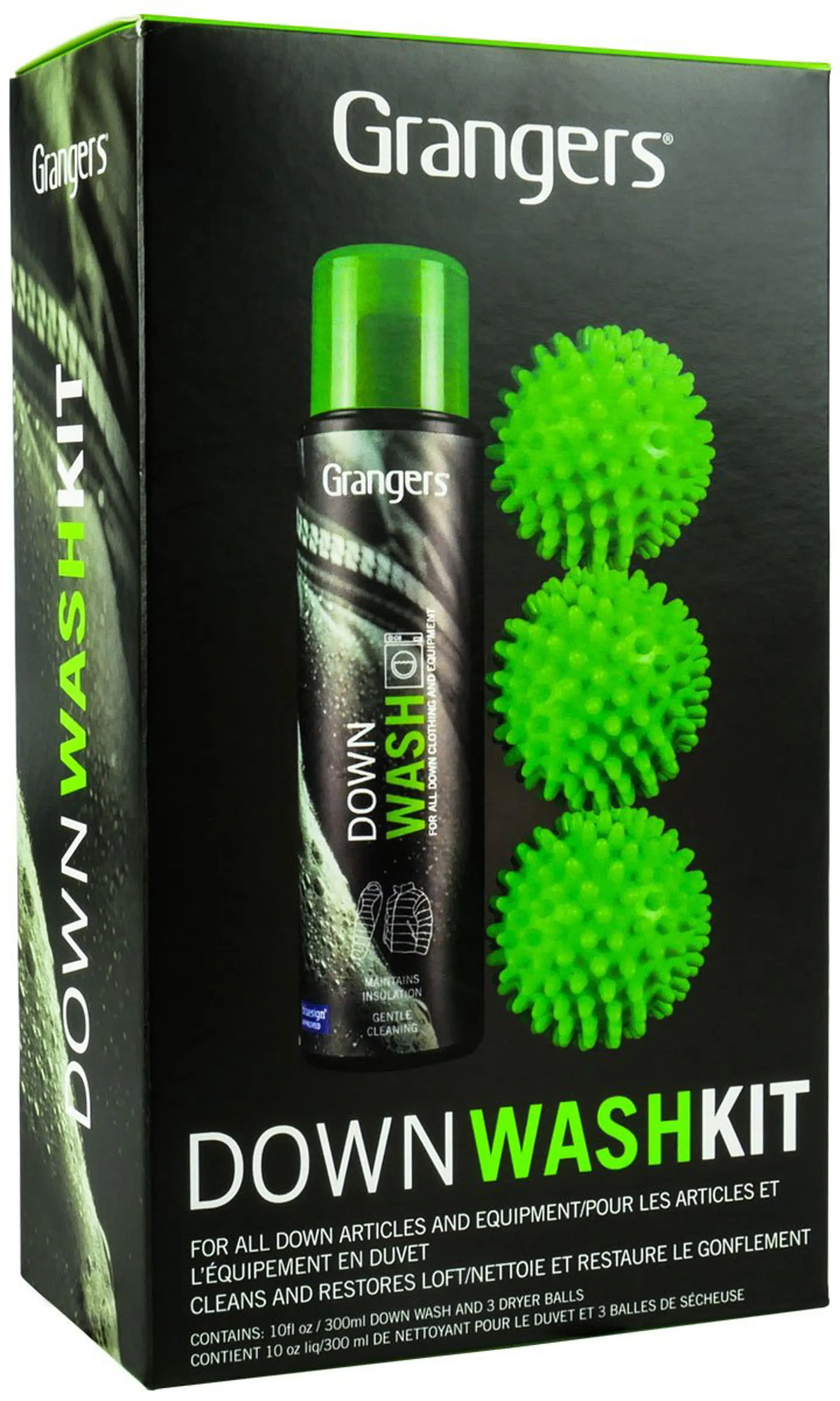Grangers Down Wash Kit is a complete product protection package designed to make caring for all down-filled articles as easy as possible. Each kit contains one bottle of Grangers Down Wash and three reusable drying balls.