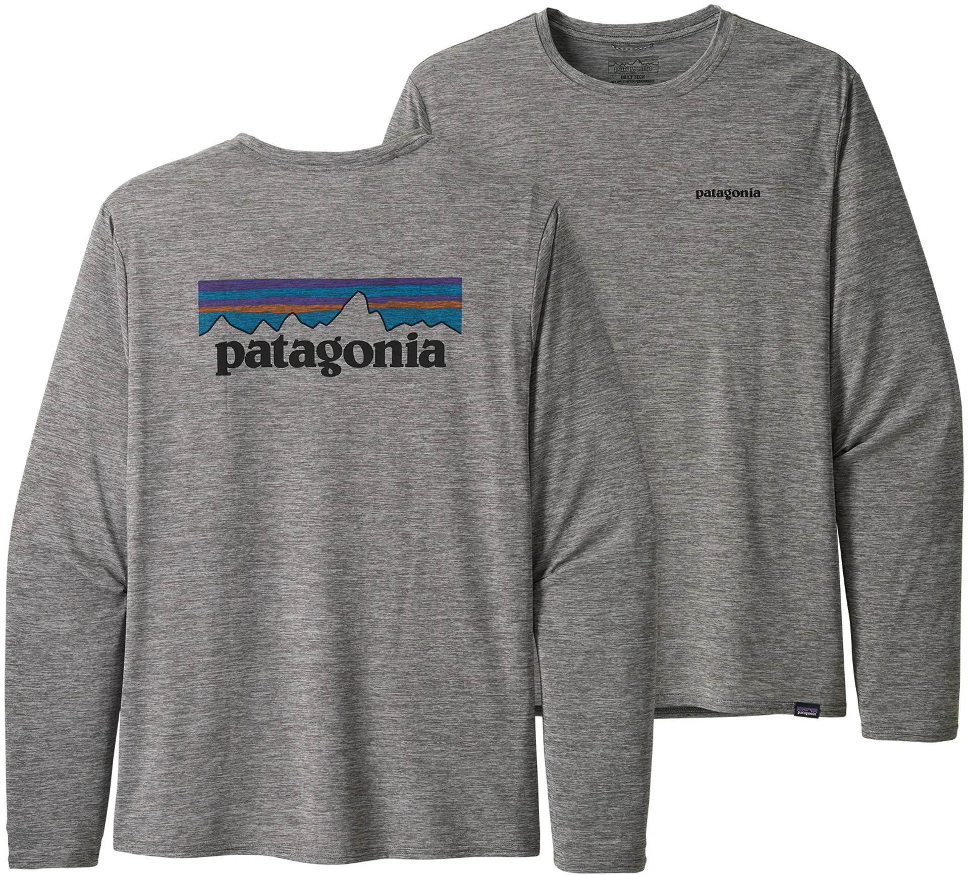 Patagonia Mens Long Sleeved Cap Cool Daily Graphic Shirt - P-6 Logo: Feather Grey