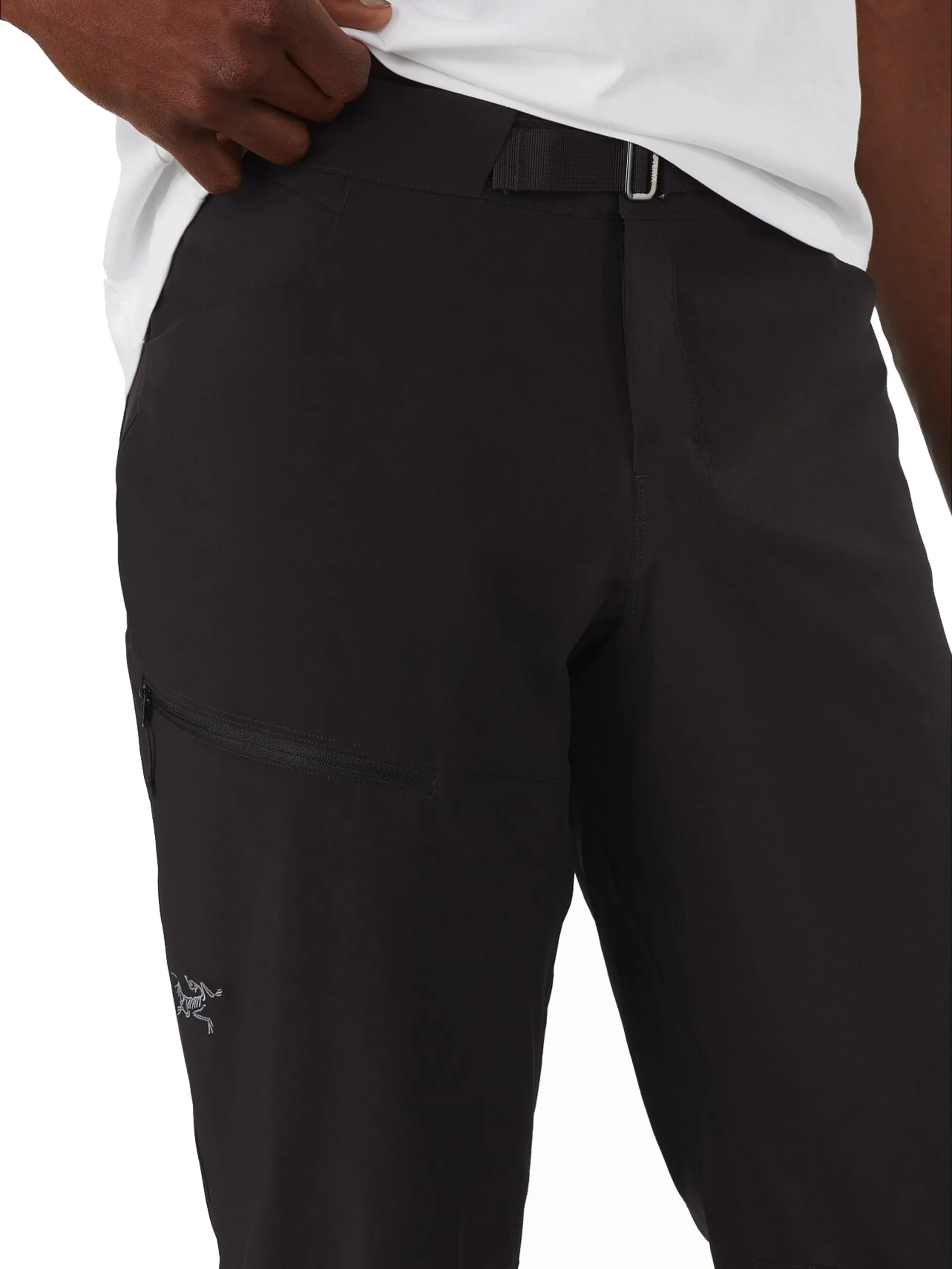 The trim fit is streamlined, but not constrictive, and articulated patterning and a gusseted crotch combine with the fabric’s four-way stretch to deliver exceptional freedom of movement. Pockets are positioned for accessibility and functionality, the waistband is specifically designed to ride comfortably under a pack, and an integrated webbing belt secures the fit.