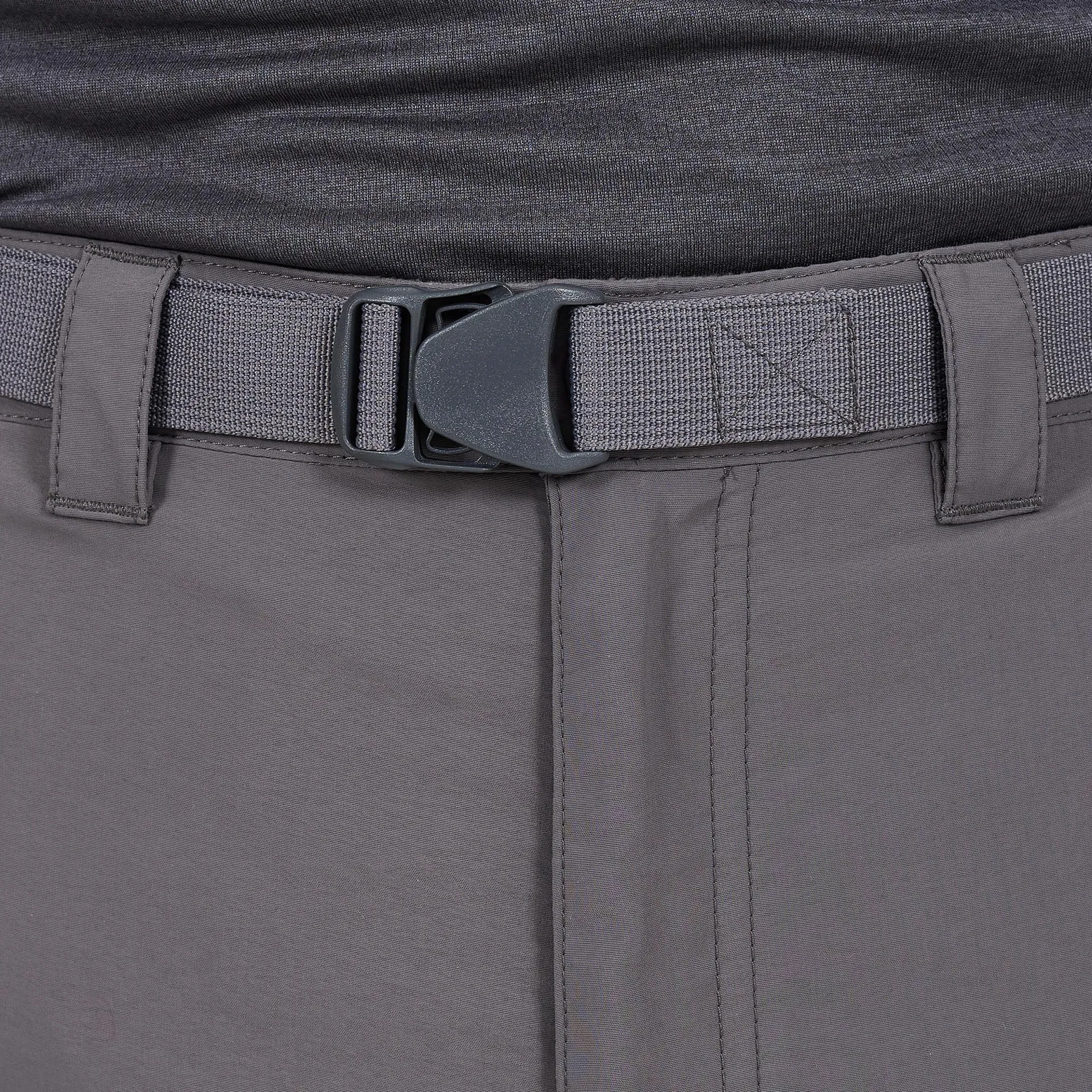 • Zipped fly with press snap and button closure & Removable webbing belt