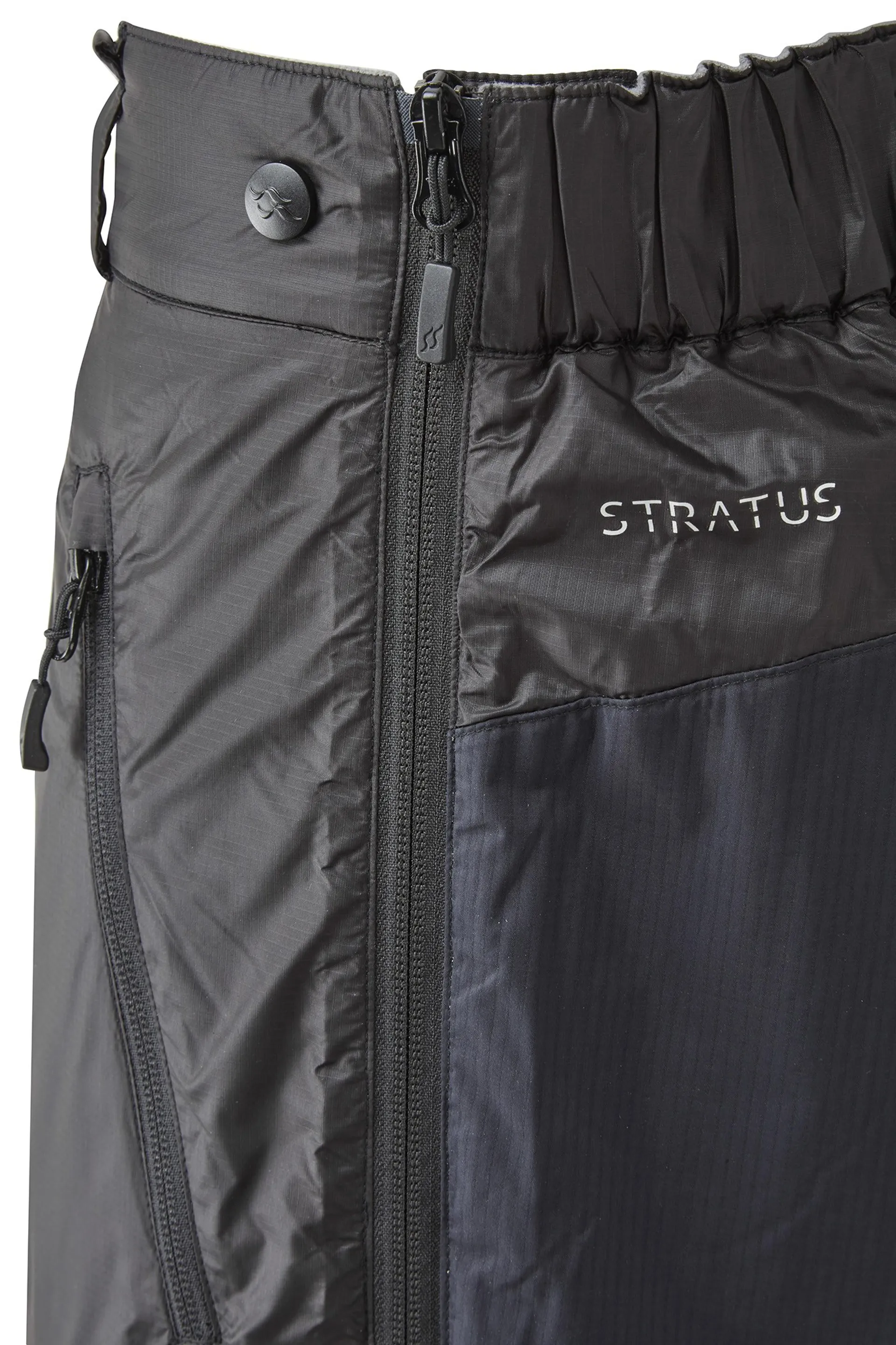 The waistband is flat at the front, elasticated at the back and features a YKK zipped fly. These pants also feature YKK zipped hand warmer pockets, brace compatible loops and it even comes with its own stuff sack.