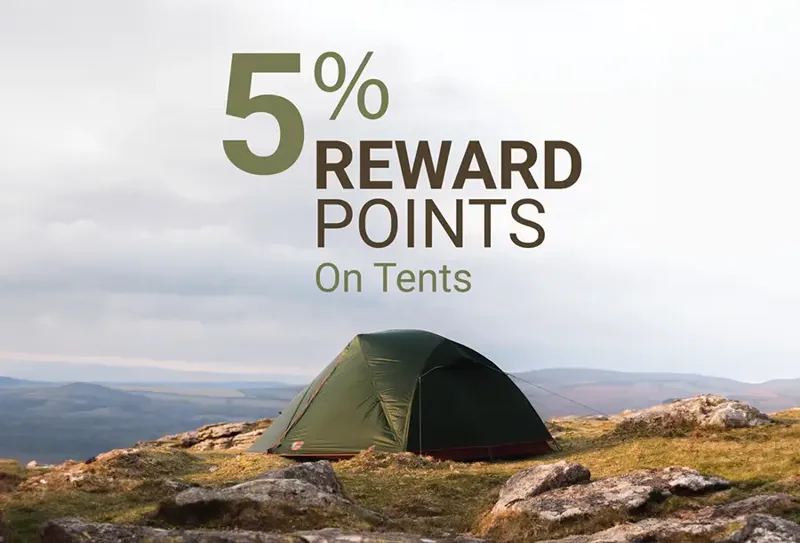 The offer applies to all our 2025 range. Get 5% in reward points on all 2025 tents – ready to use on future purchases. We’ll email you with your points total each month or after you buy. Buy online or in-store. Offer has now ended 02/06/25. Find out more about Rewards.