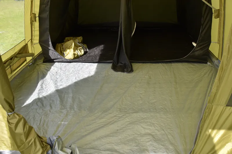 Comfort isn't compromised with the sealed-in groundsheet designed to keep out draughts, insects, dirt and water from the tent and the drop-down door allows you to effortlessly enter and exit your tent without any trip hazards.