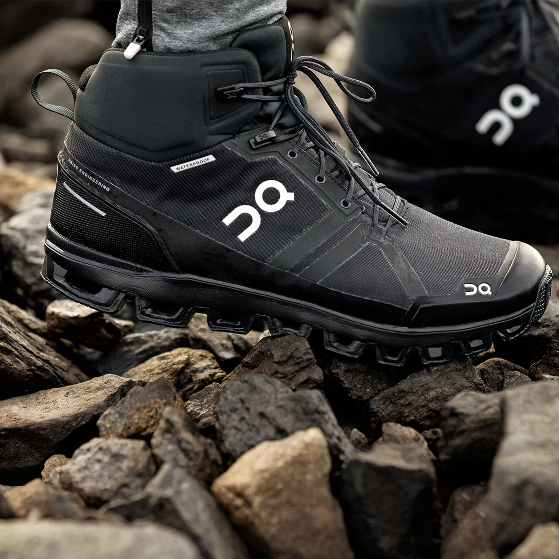 Terrain proof. Element proof. Excuse proof. The first On speed-hiking boot is built for traction, pace and protection in all conditions. And it's up to 35% lighter than competitors. Born in the Swiss Alps, it's engineered for performance stride after mountain-top stride.