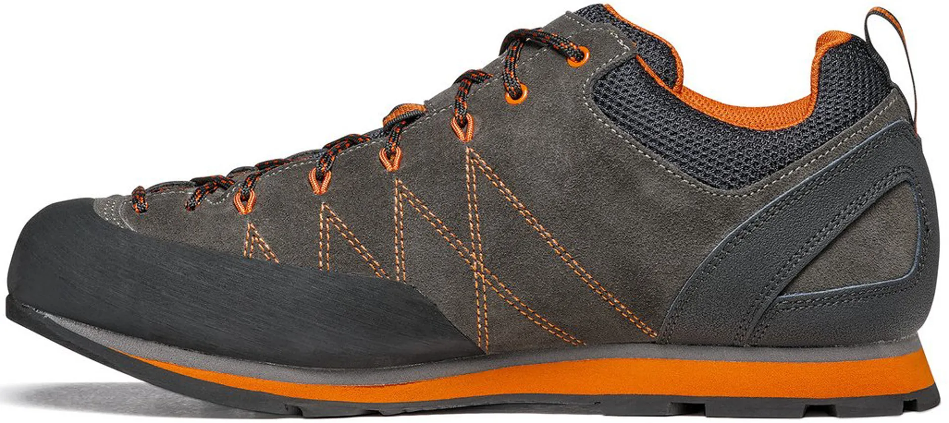 The classic Scarpa Crux approach shoe features a Vibram Vertical unit with an integrated toe climbing zone has been enhanced with the use of Megagrip compound to ensure the best grip in all conditions and terrain. The BN last strikes a balance between a precise fit for scrambling and climbing, precision with comfort for all day walking. The upper has had a makeover too, revised lace detailing and a new colour makes these approach shoes visually appealing and a lighter, more sculpted toe rand keeps your feet protected whatever the activity.