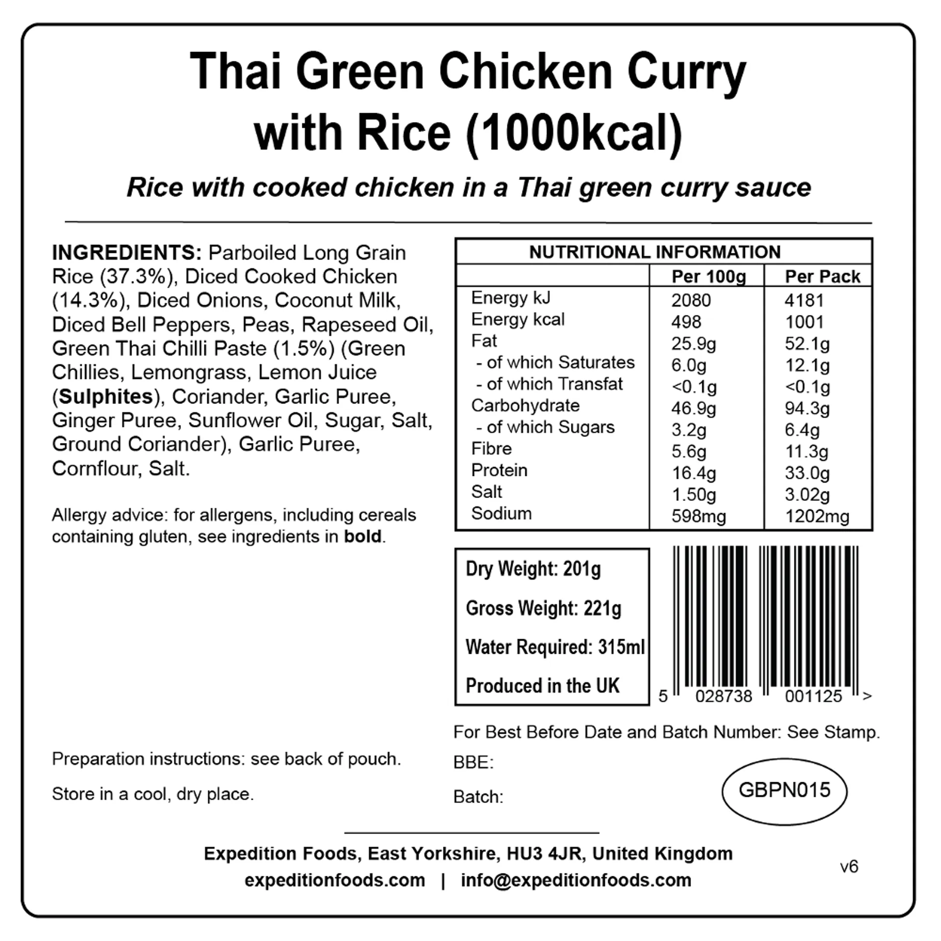 Expedition Foods Thai Green Chicken Curry with Rice - 1000kcal