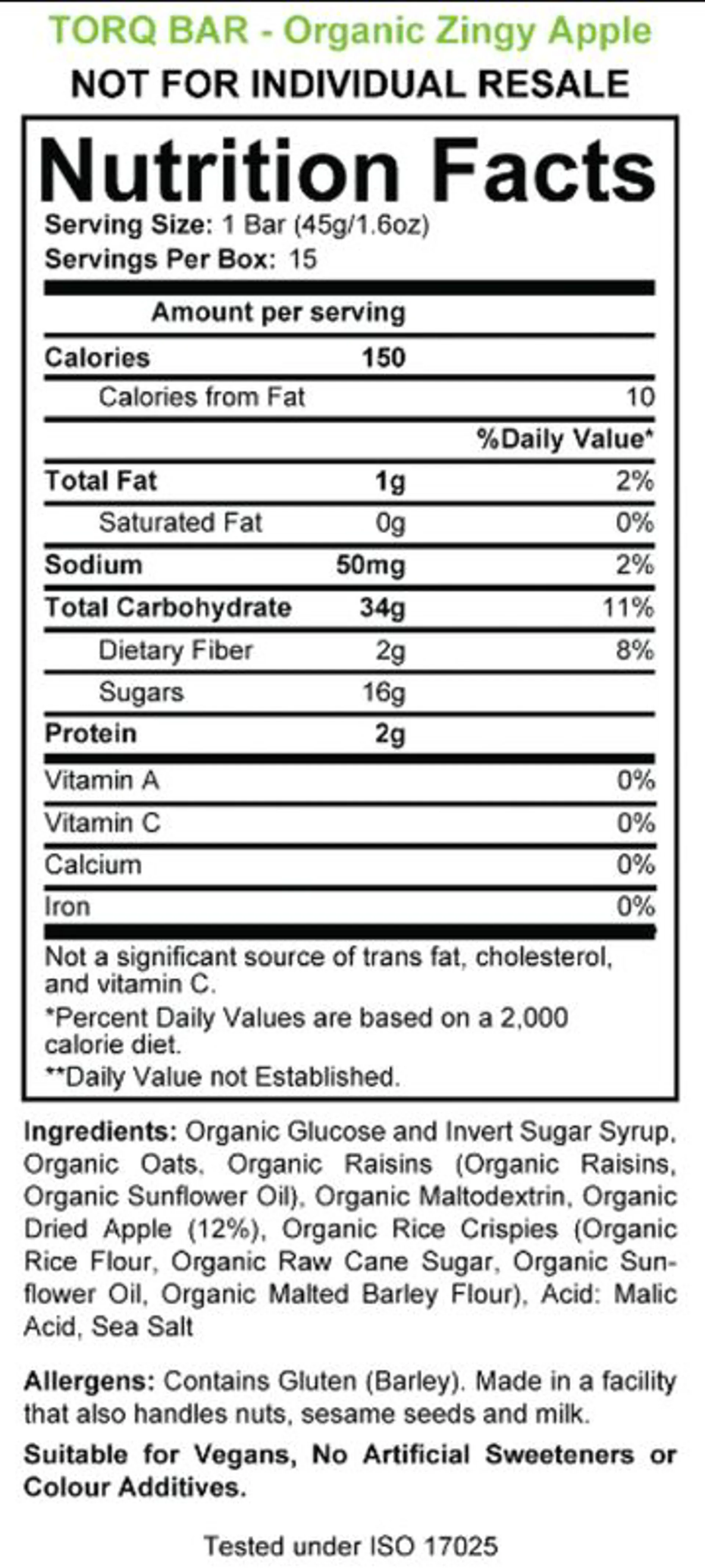 TORQ Organic Energy Bar - Zingy Apple