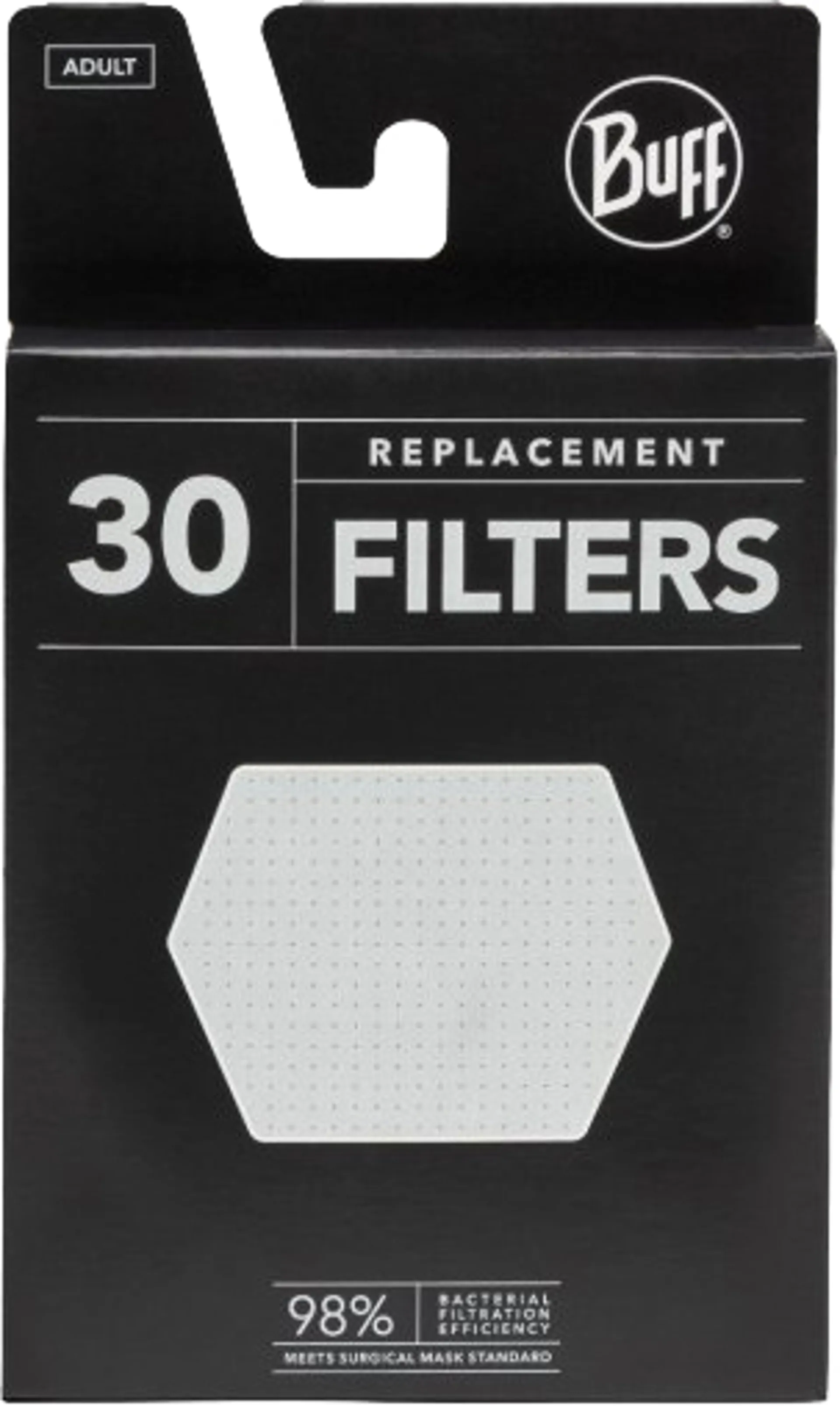 Replacement filters for BUFF® Filter Mask. Sold in packs of 30 replacement filters.
