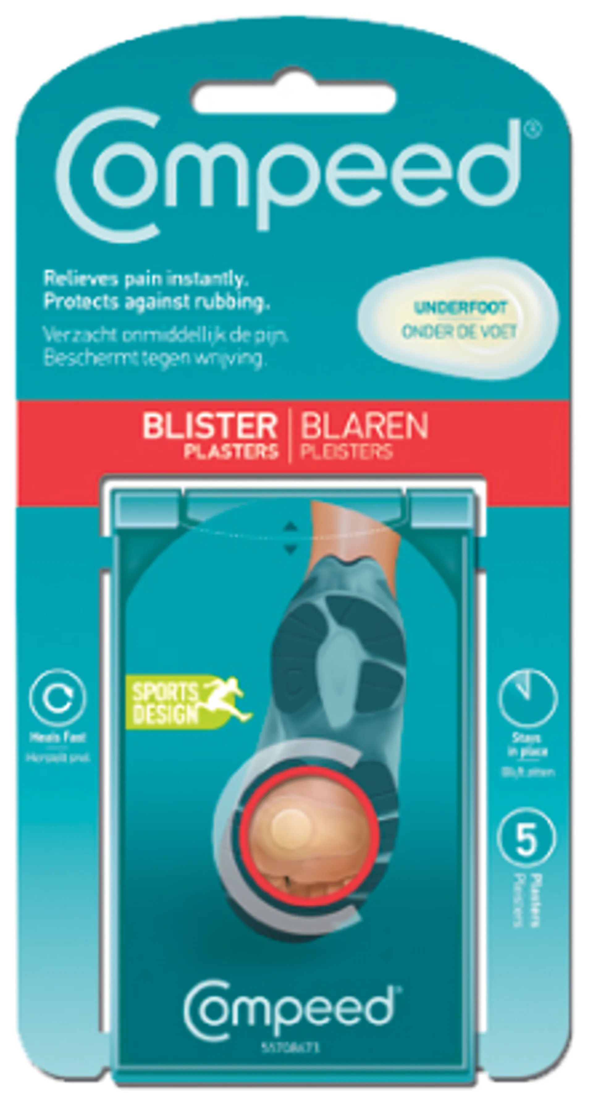 COMPEED Blister Underfoot has a unique shape specially adapted to fit and protect underfoot blisters, plus an extra cushioning zone to ease the pressure and provide long-lasting pain relief.