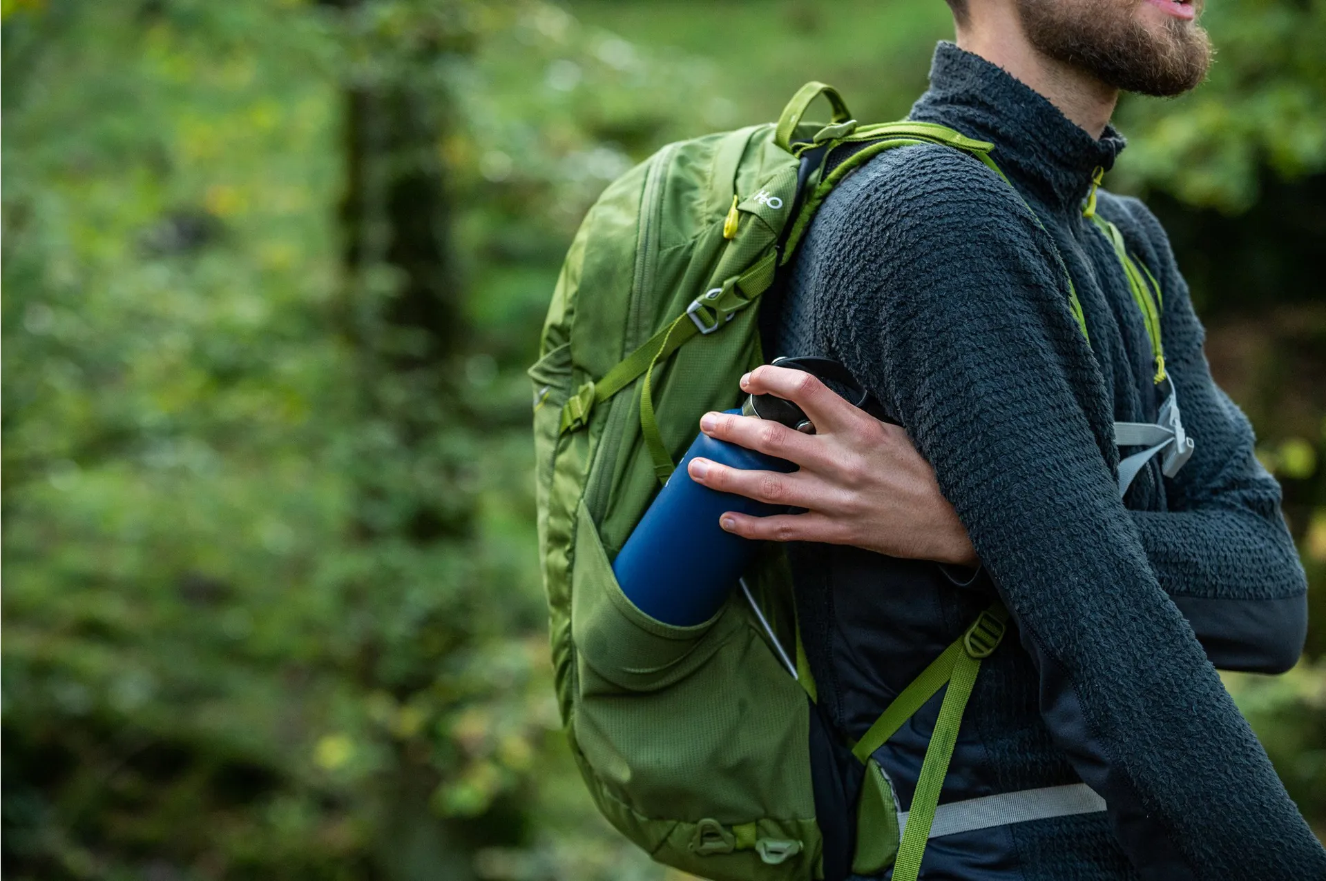 • Stretch water bottle side pockets