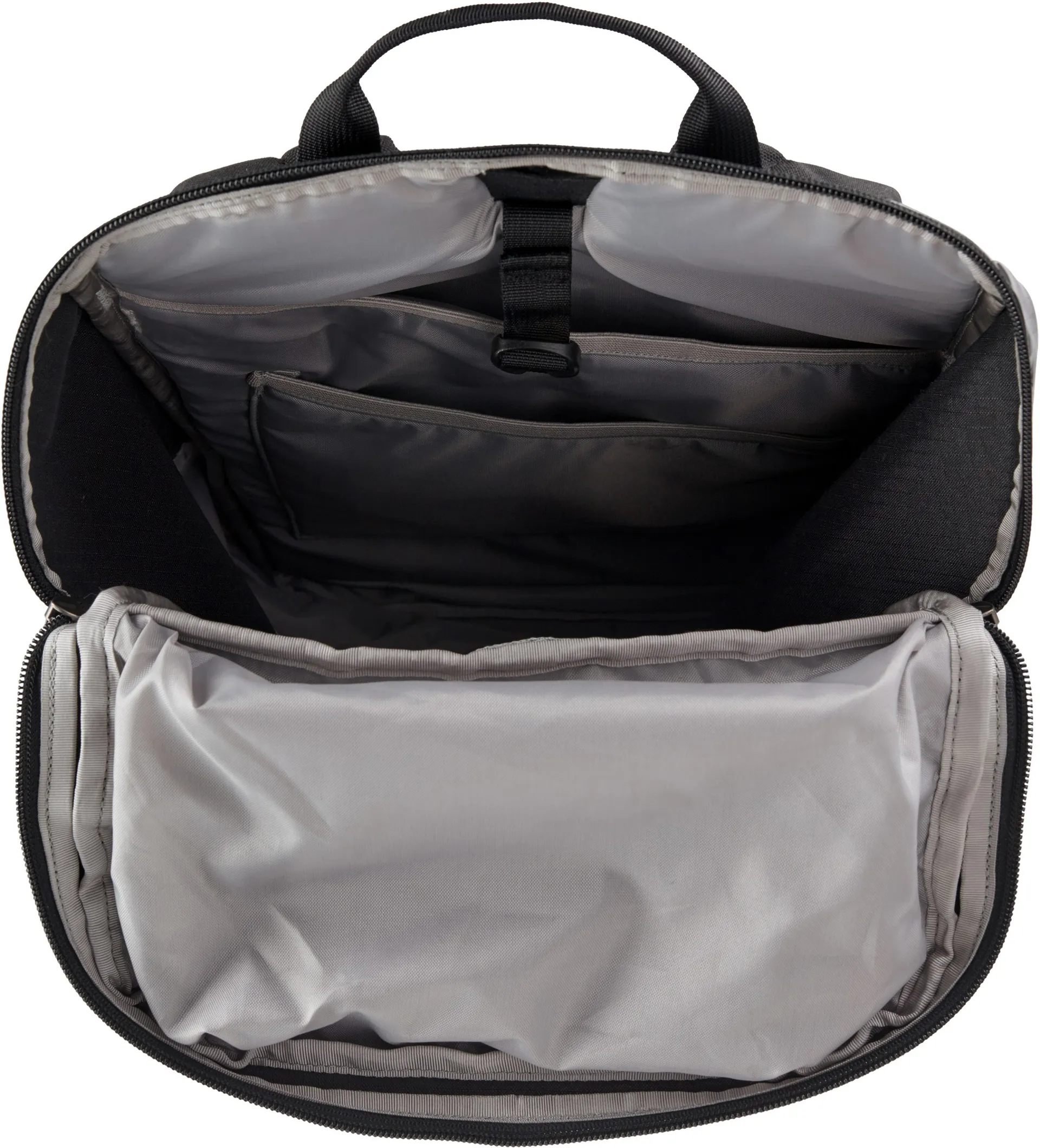 The large main pocket features an internal padded sleeve for up to 15” laptops or a hydration reservoir. A mesh pocket is equipped with a key keeper and an organiser panel holds small items such as phones. The bucket opening replaces a traditional lid and contains a small stash pocket that seals with a reverse-coil zipper. Daisy chain lash points secure items to the outside of the pack, and a zippered front pocket holds quick-access items. Stretch-woven side pockets hold a wide range of water-bottles. The padded shoulder straps provide all day comfort, and the moulded back panel features air-mesh for comfort and increased ventilation.