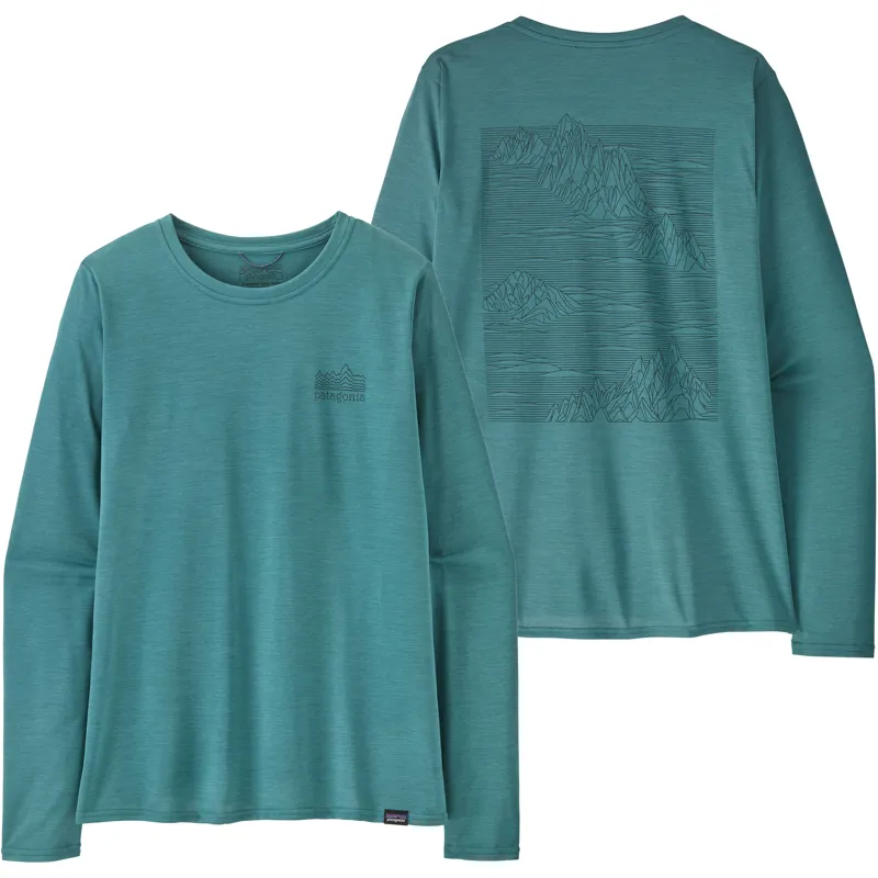 Patagonia Womens Long Sleeved Cap Cool Daily Graphic Shirt - Strataspire-Wetland Blue X-Dye