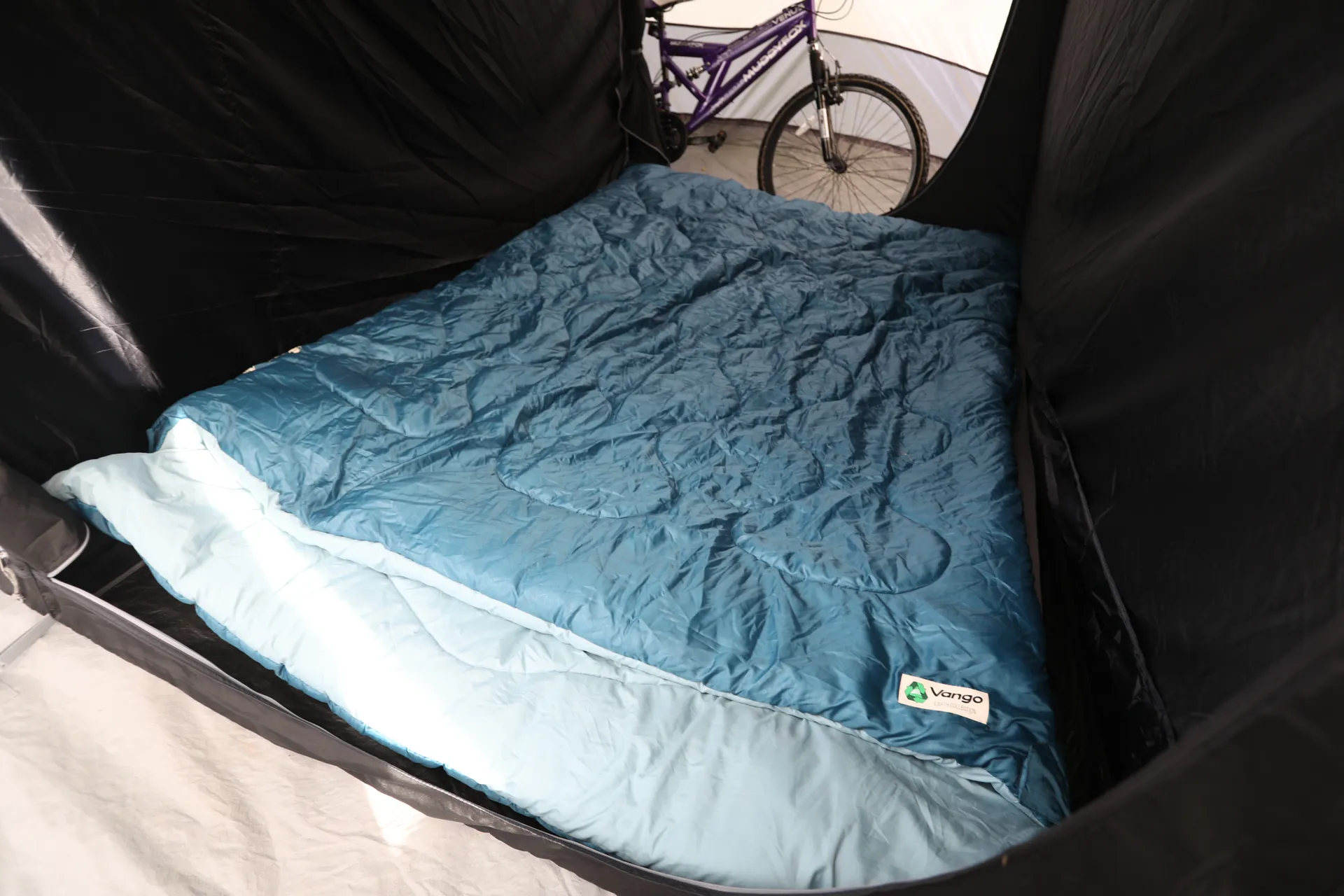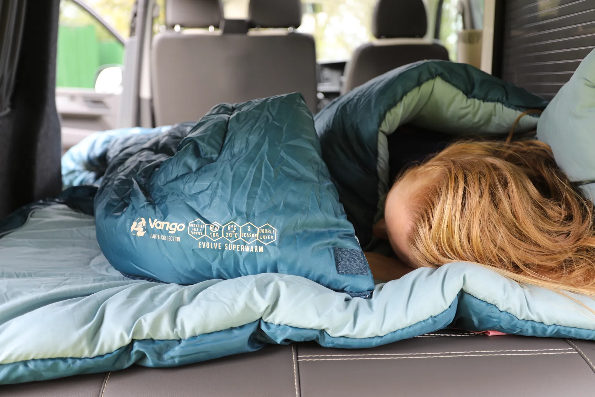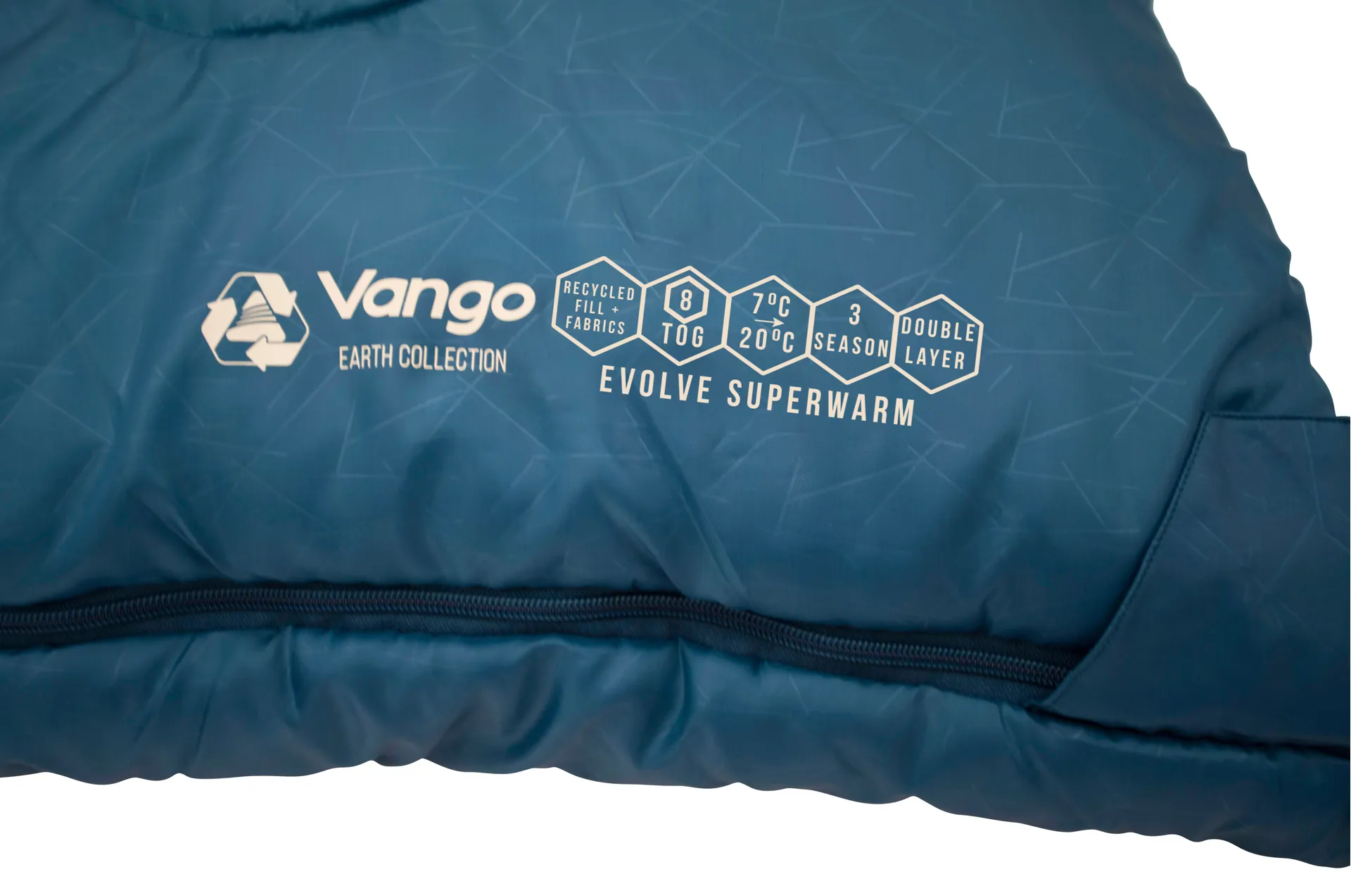 The Vango Evolve Superwarm Double sleeping bag is made from 100% recycled single use plastics.