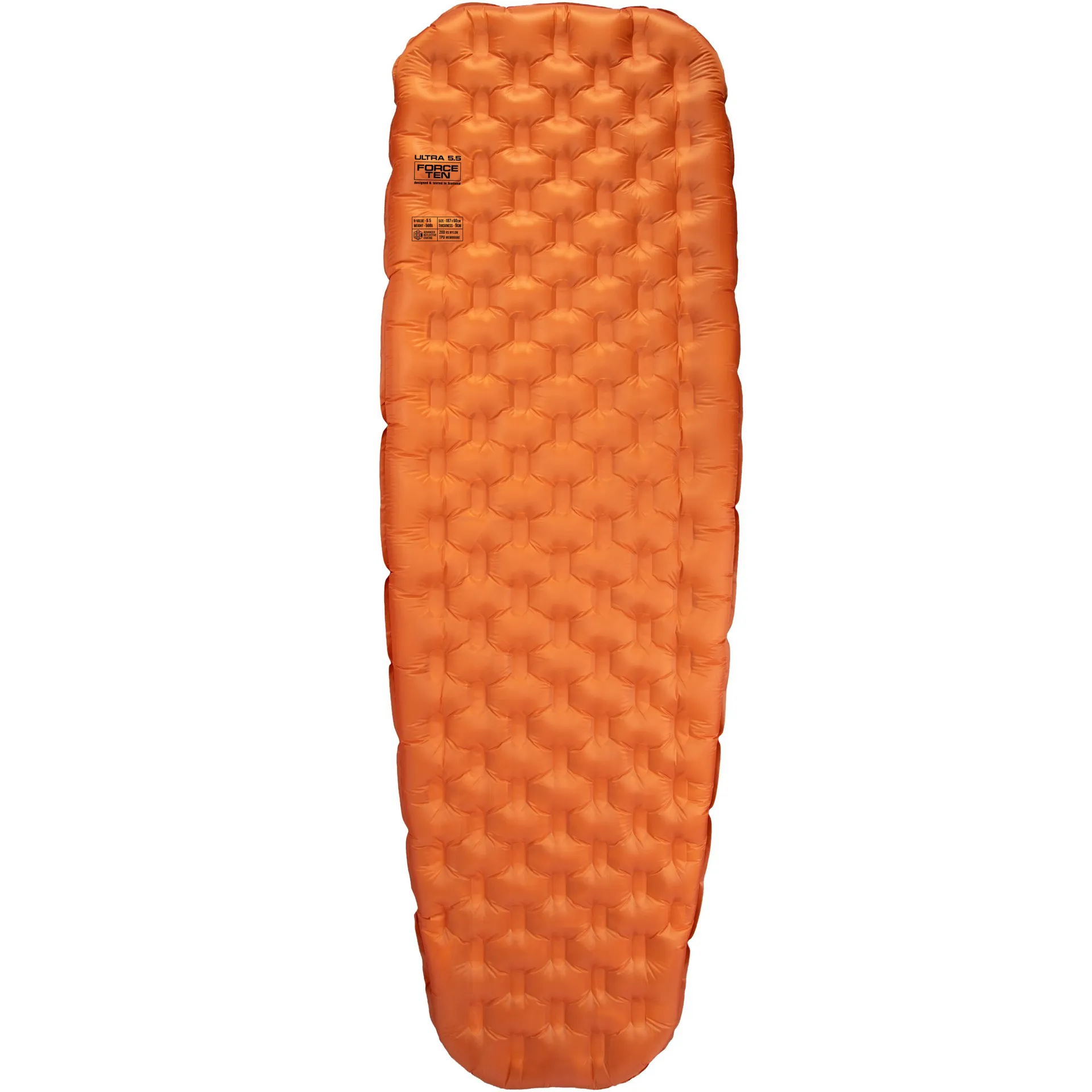 Made with a 20D 400T recycled nylon shell, the Ultra 5.5 offers a strong balance of durability and low weight, while keeping pack size minimal. Inside, air filled welded channels cushion the body and adapt to uneven ground, creating a supportive and comfortable sleep surface. ARC reflective layers return heat back toward the user, increasing insulation without adding bulk.